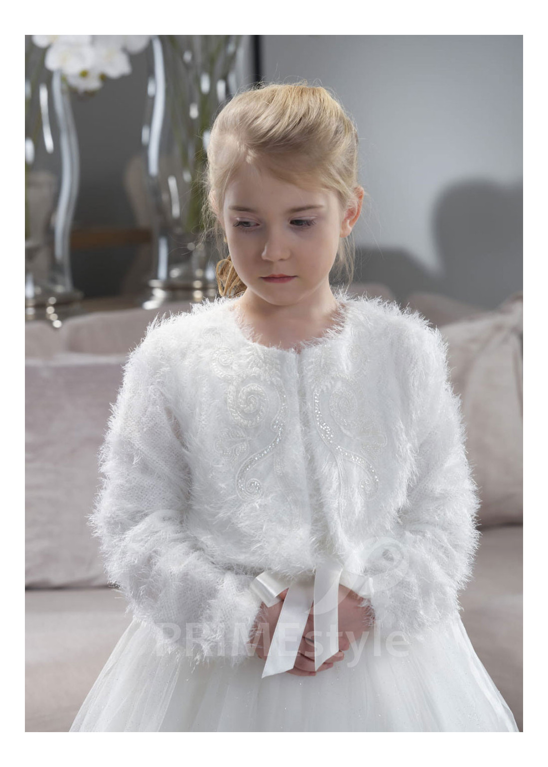 Detský kabátik z umelej kožušiny s dlhým rukávom. Vhodný k šatám na prvé sväté prijímanie aj na iné slávnostné príležitosti.