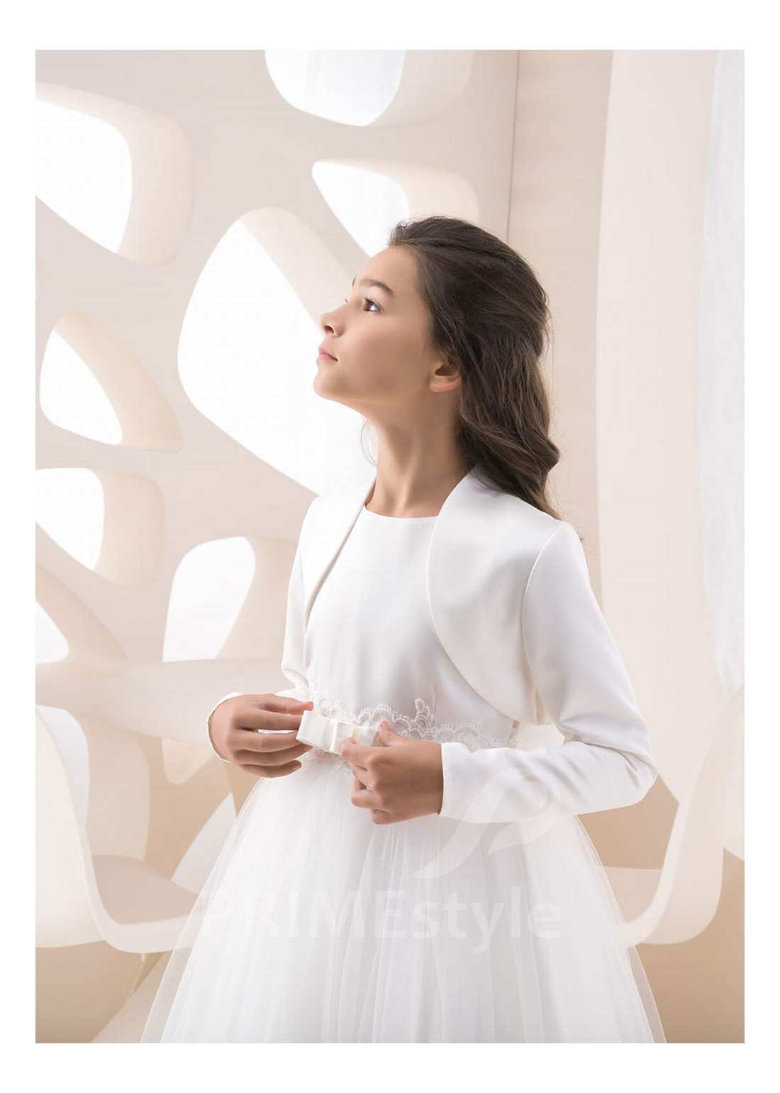 Saténové detské bolerko s dlhým rukávom. Vhodné k šatám na prvé sväté prijímanie aj na iné slávnostné príležitosti.