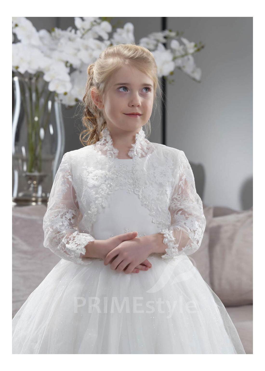 Luxusné čipkované detské bolerko s 3/4 rukávom. Vhodné k šatám na prvé sväté prijímanie aj na iné slávnostné príležitosti.