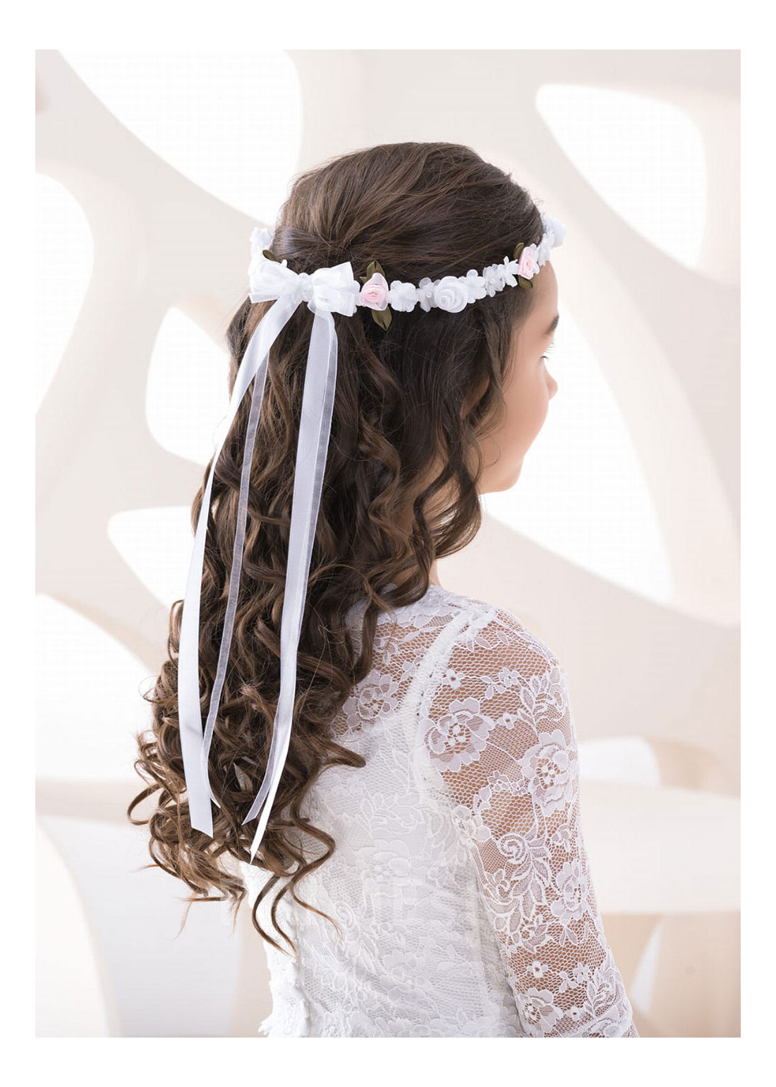 Detská čelenka do vlasov. Vhodná ako krásny doplnok ku šatám na prvé prijímanie, ale aj na iné slávnostné podujatia.