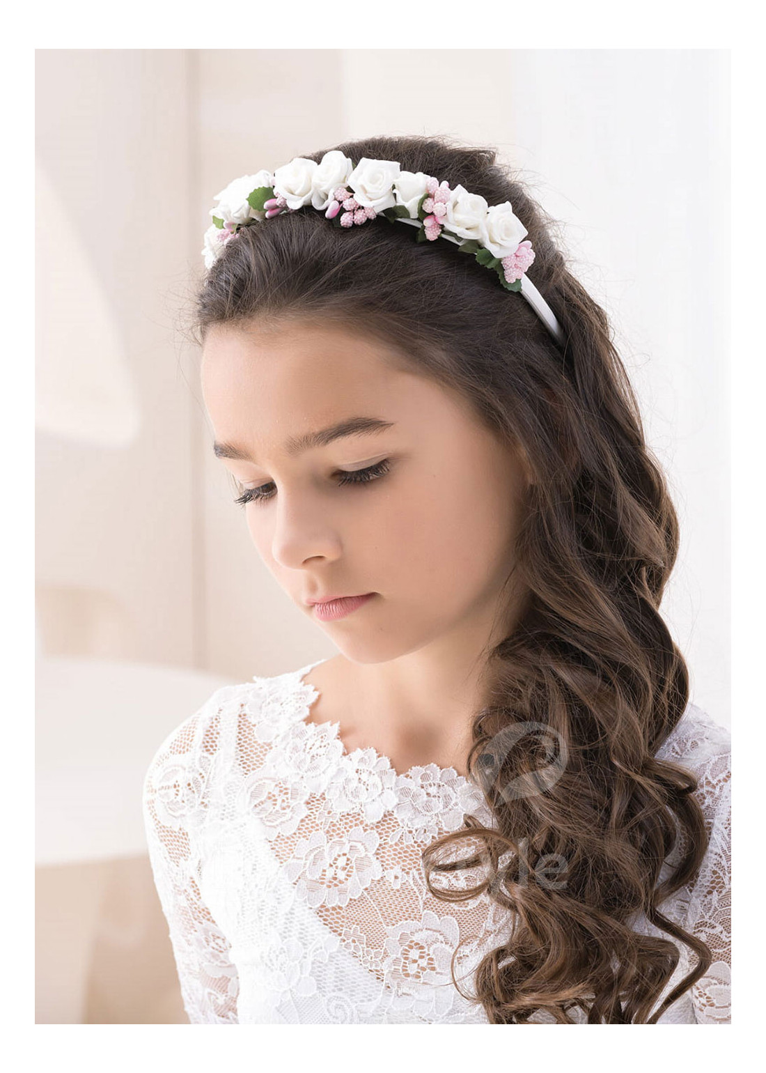Detská čelenka do vlasov. Vhodná ako krásny doplnok ku šatám na prvé prijímanie, ale aj na iné slávnostné podujatia.