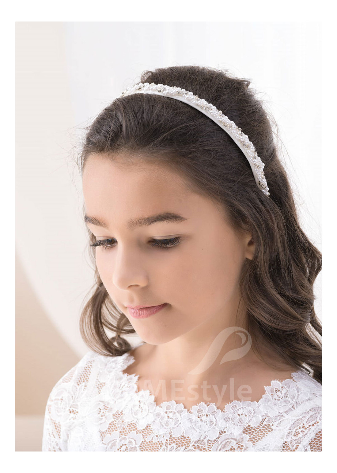 Detská čelenka do vlasov. Vhodná ako krásny doplnok ku šatám na prvé prijímanie, ale aj na iné slávnostné podujatia.
