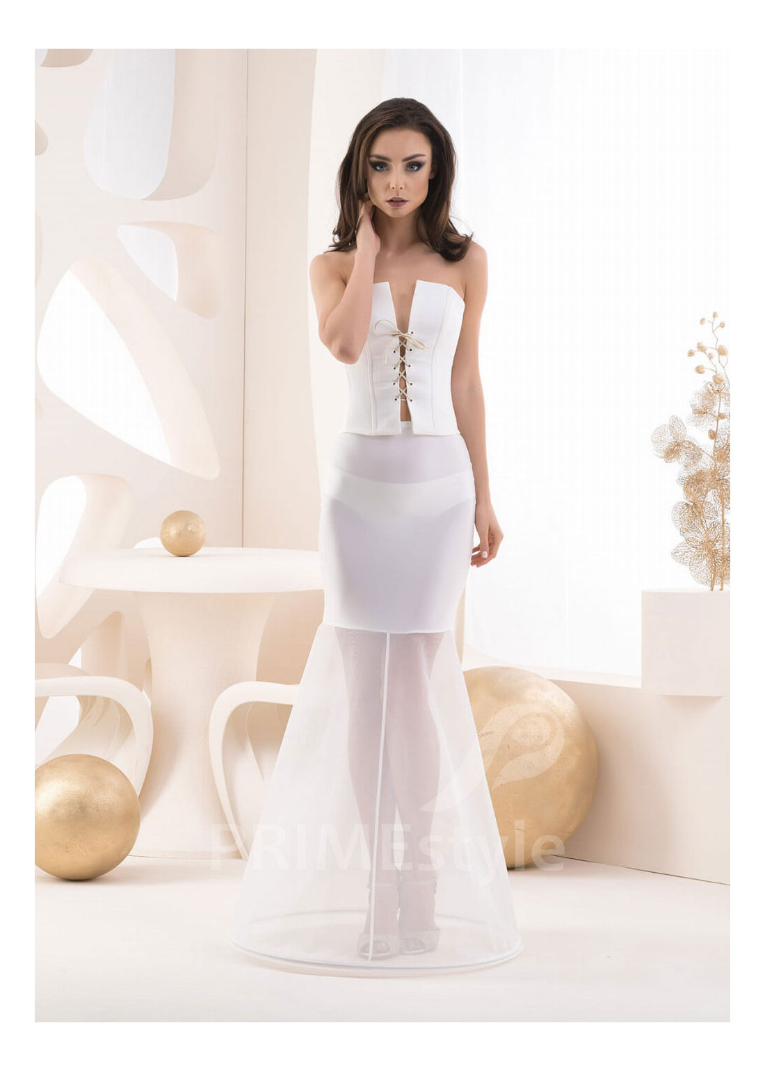 Univerzálna svadobá spodnica, vhodná k použitiu so svadobnými šatami strihu "morská panna". Vyrobené v EU, zodpovedá všetkým hygienickým normám, platným v EU pre výrobky, ktoré prichádzajú do priameho kontaktu s ľudským telom.