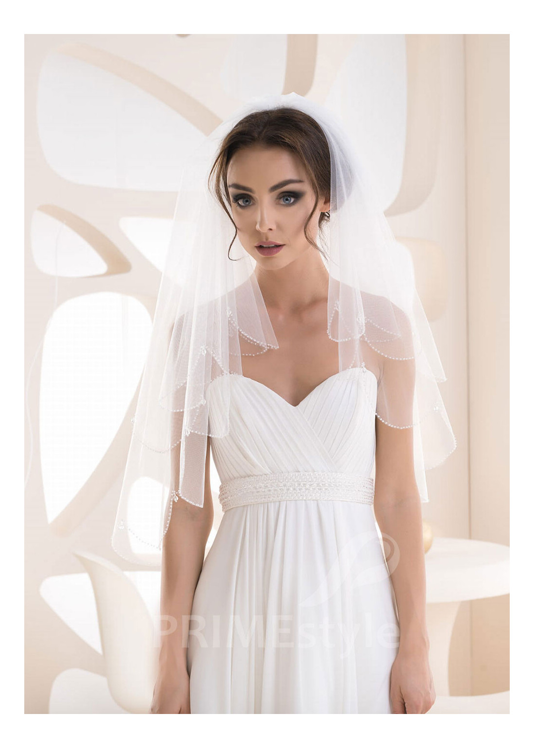 Dvojvrstvový svadobný závoj s okrajom, ručne vyšívaným perličkami.