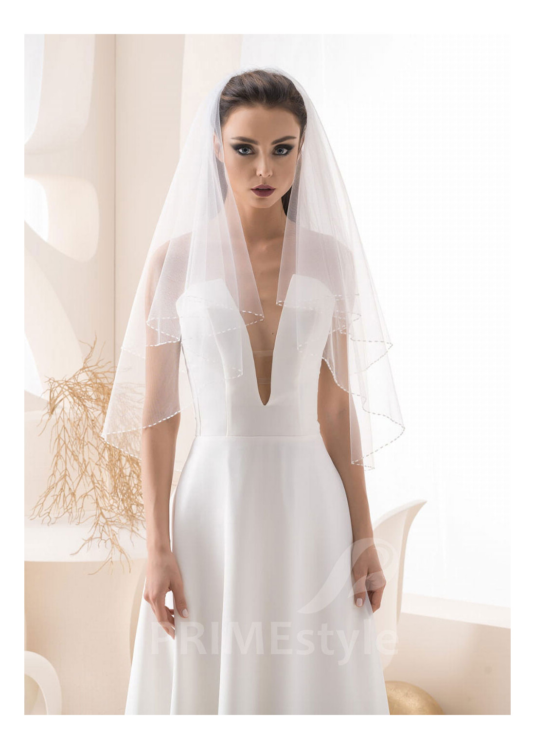 Dvojvrstvový svadobný závoj s okrajom, ručne vyšívaným perličkami.