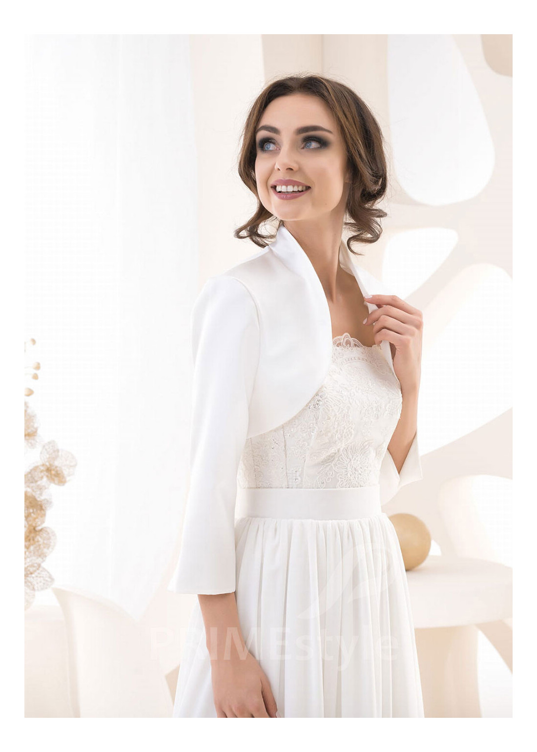 Jednoduché bolerko na svadobné šaty od renomovaného európskeho výrobcu.