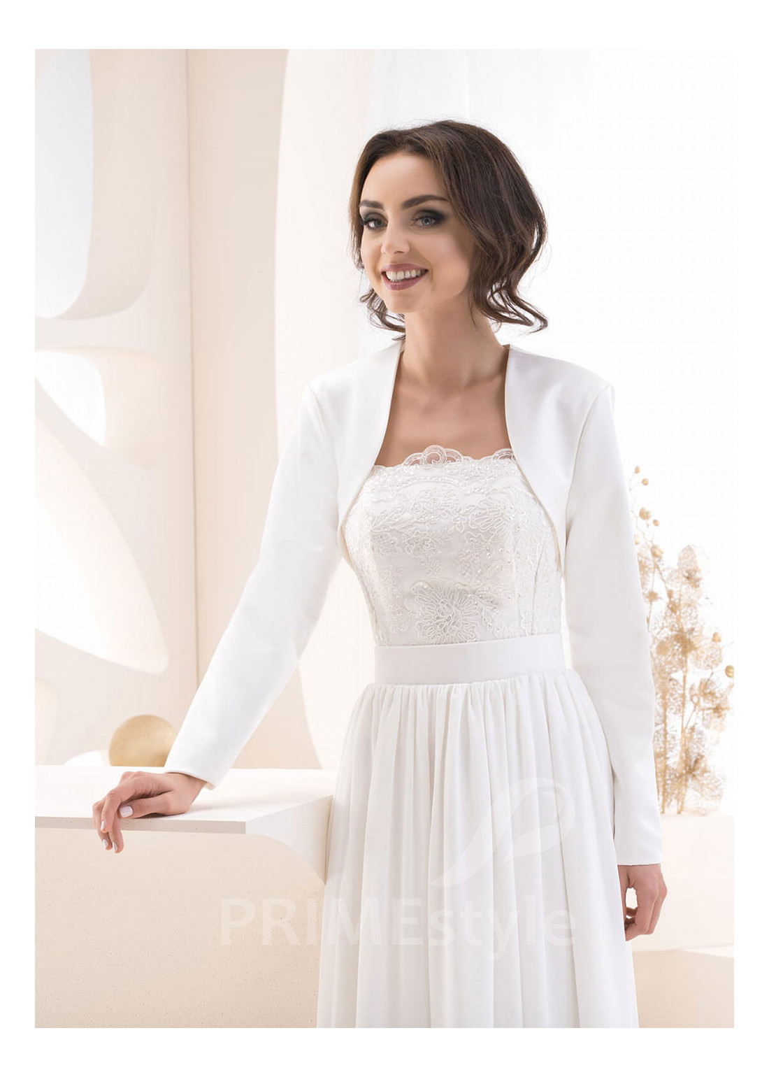 Jednoduché bolerko na svadobné šaty od renomovaného európskeho výrobcu.