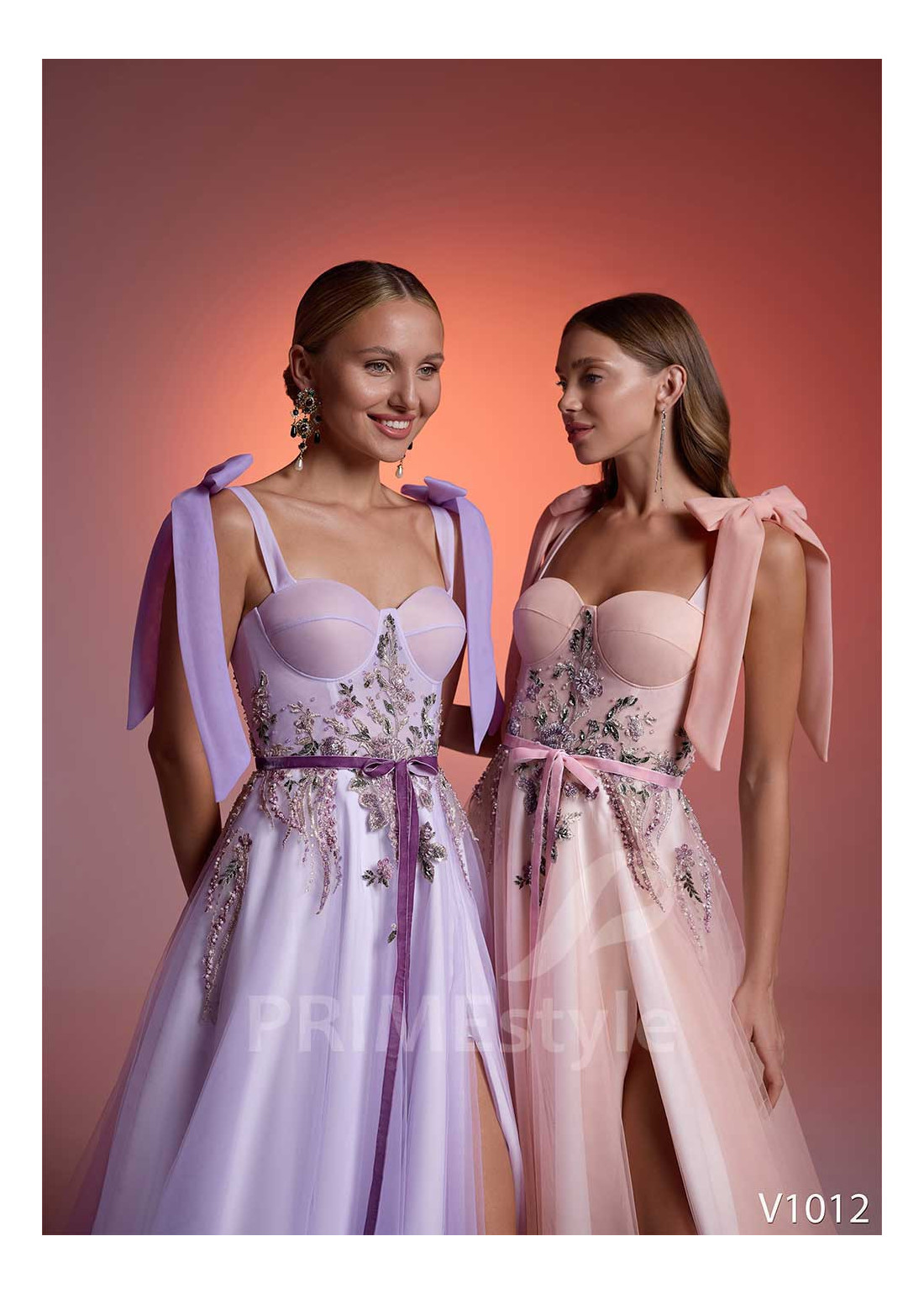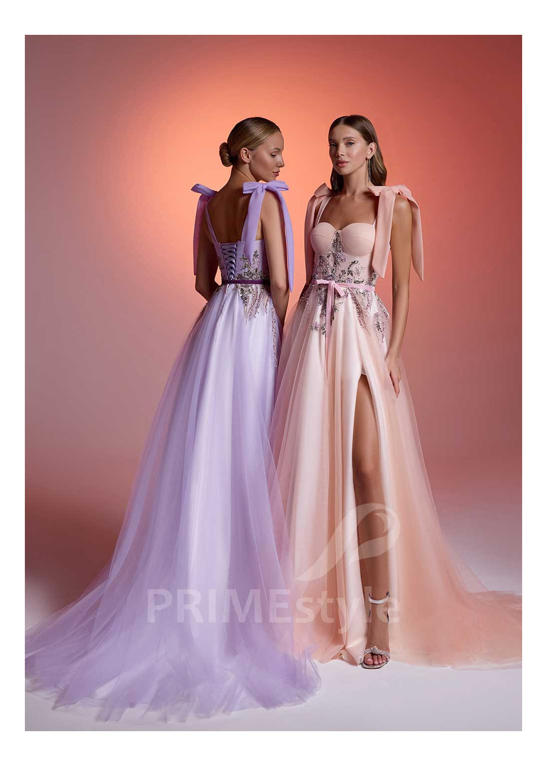 Nežné korzetové spoločenské šaty na ramienka s otvoreným dekoltom, trendovým srdiečkovým výstrihom na hrudi, mierne odhaleným chrbtom a ľahkou padavou tylovou sukňou s rozparkom. Vhodné aj ako šaty na ples, dlhé večerné šaty, šaty na svadbu a šaty pre svadobné mamy.