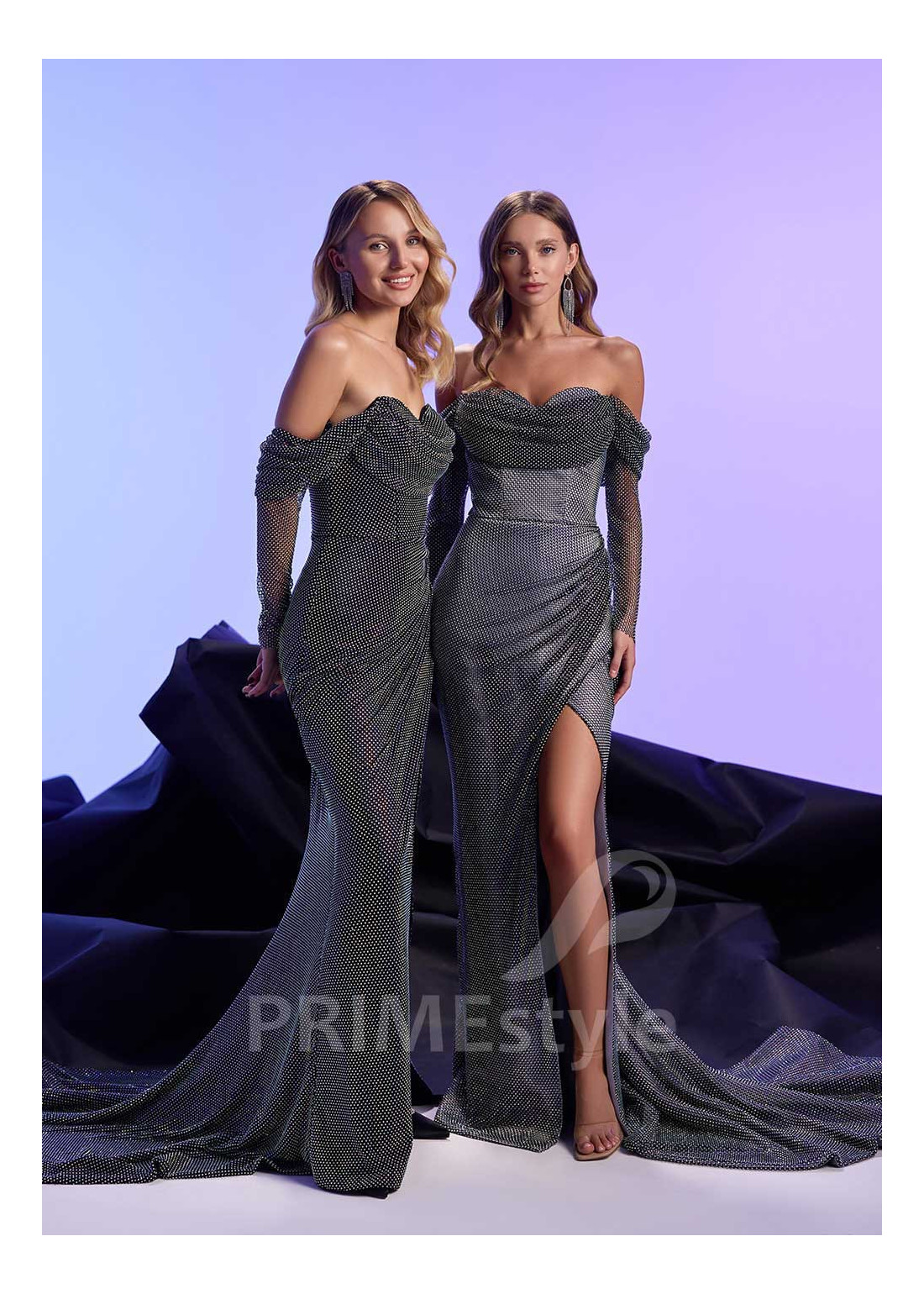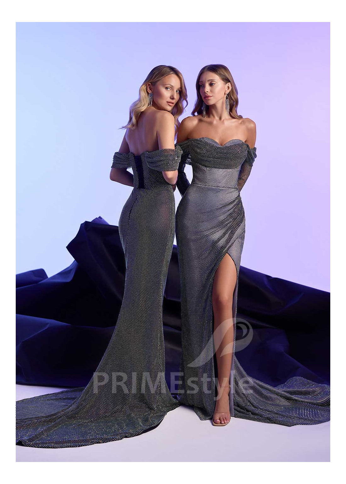Krásne úzke spoločenské šaty s otvoreným dekoltom, trendovým srdiečkovým výstrihom na hrudi a efektnou originálne tvarovanou sukňou s rozparkom. Vhodné aj ako šaty na ples, šaty na stužkovú, šaty na svadbu a šaty pre svadobné mamy.