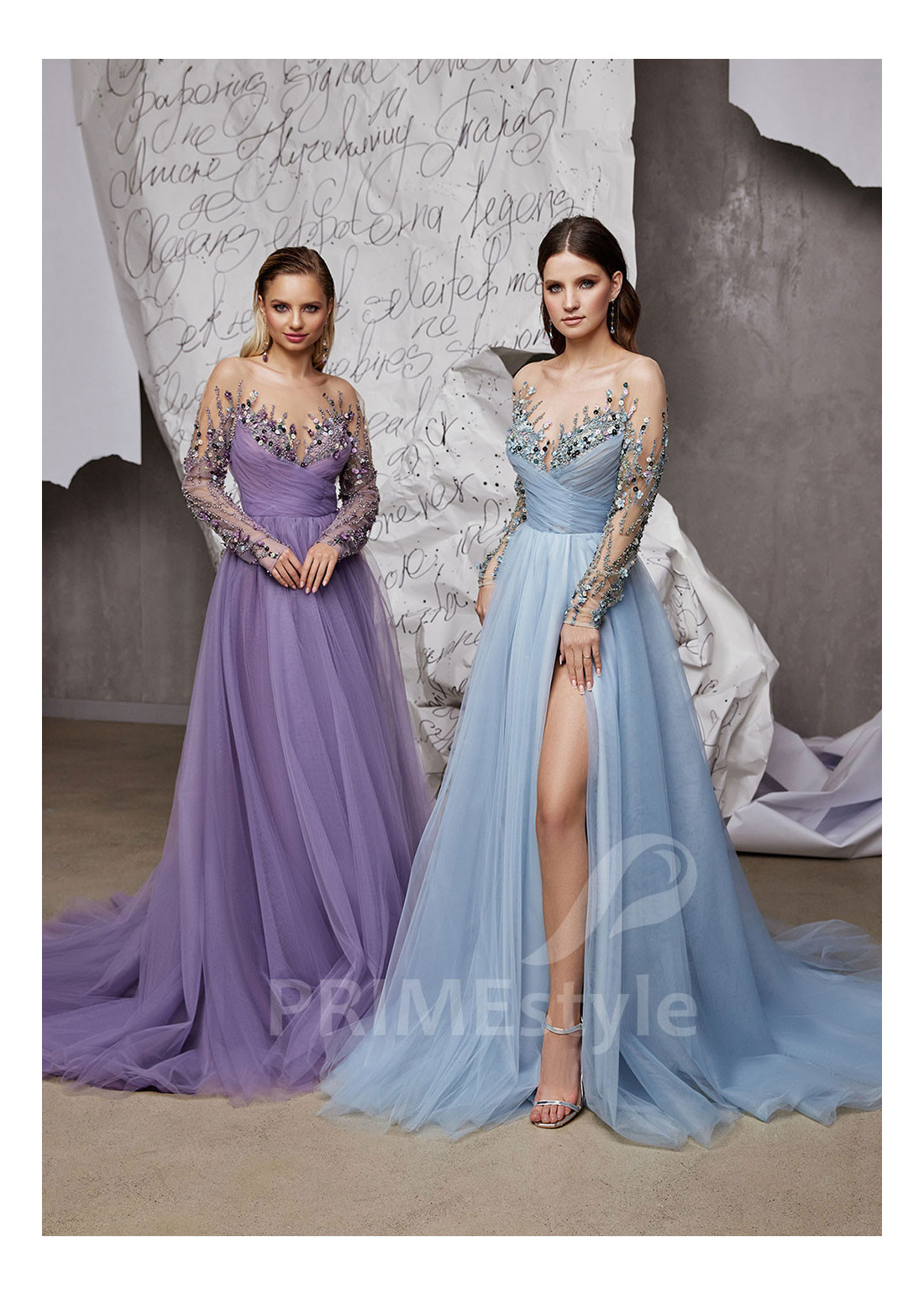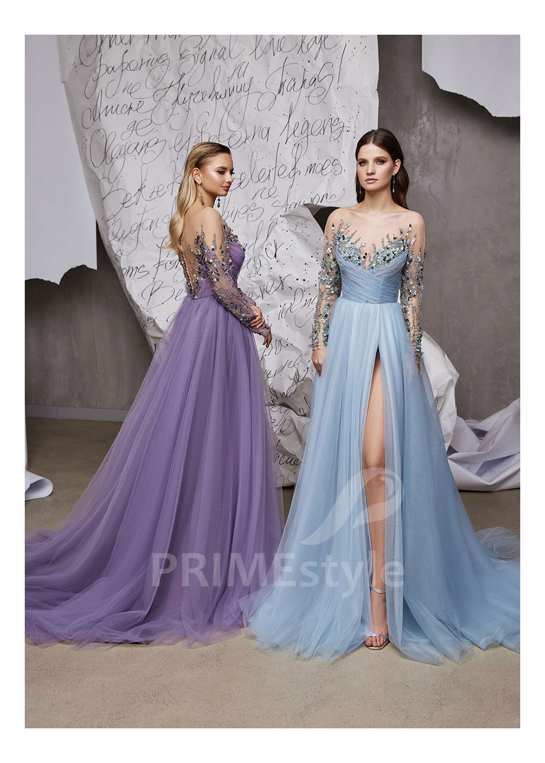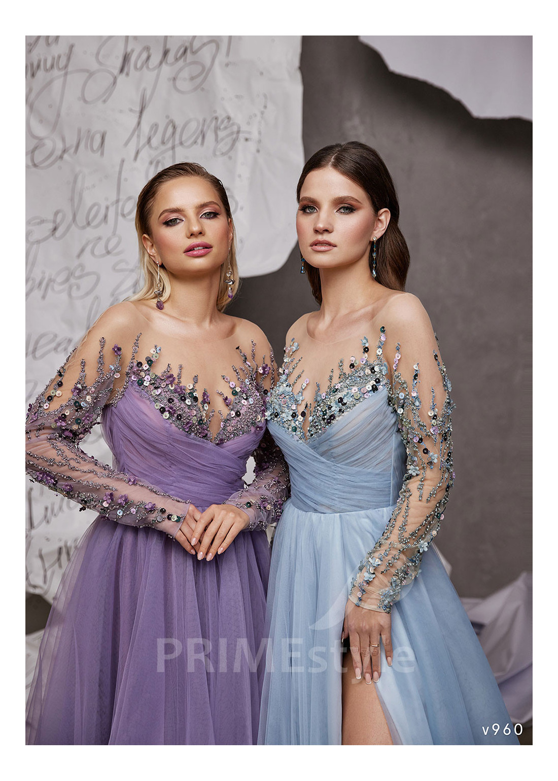 Dlhé luxusné spoločenské šaty s rukávom. Horná časť korzetu a rukávy sú zdobené nádhernou farebnou vyšívanou čipkou. Sukňa s hlbokým rázporkom na ľavej nohe. Vhodné aj ako šaty na ples alebo šaty pre svadobné mamy.