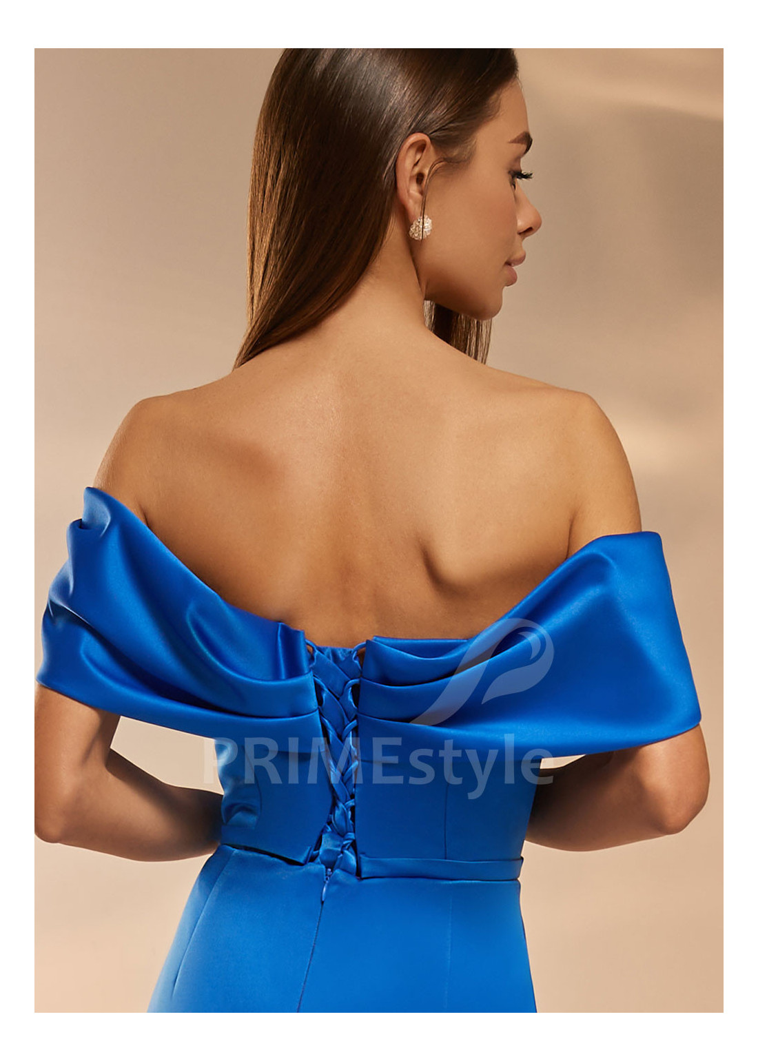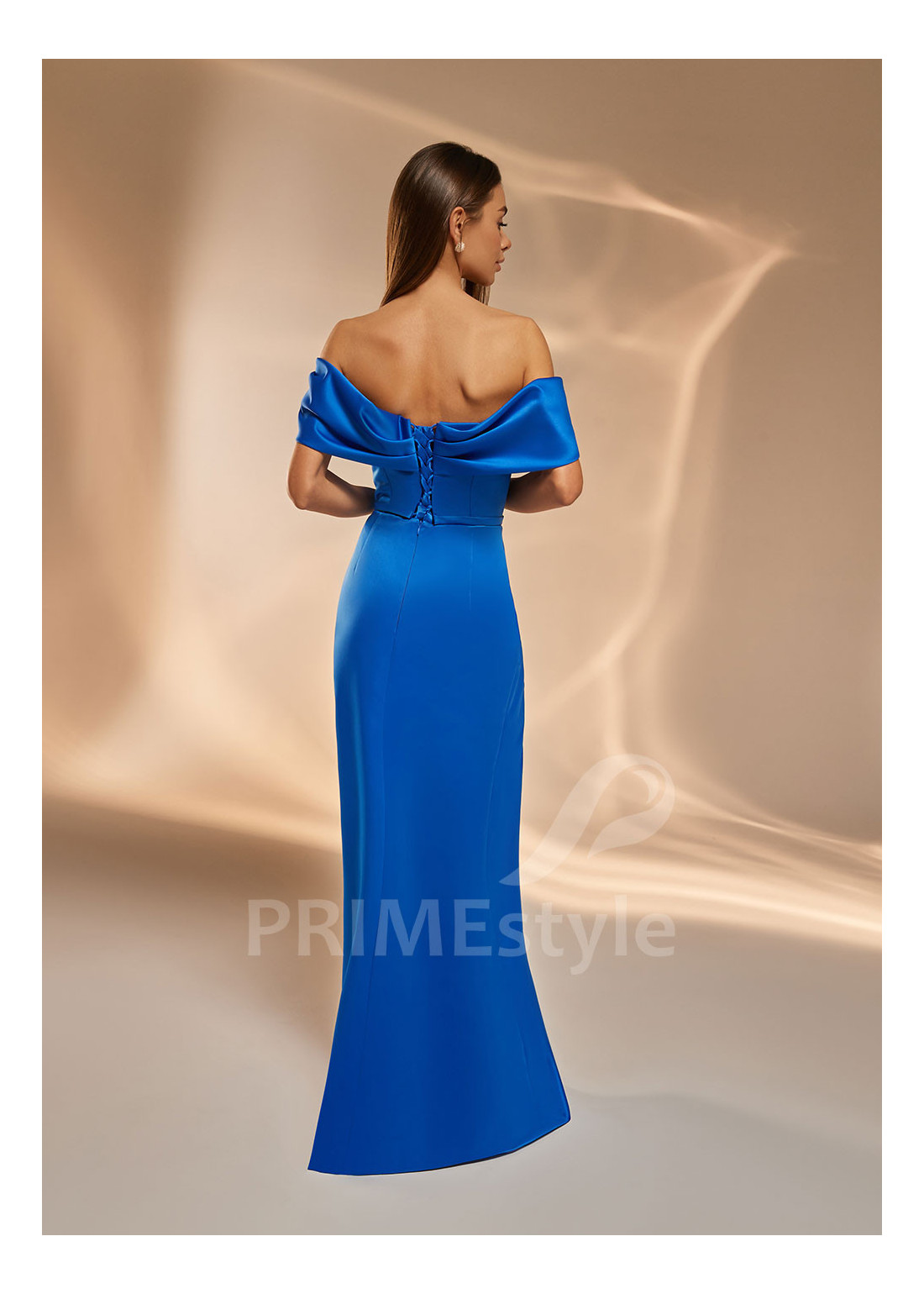 Saténové spoločenské šaty s padnutými ramienkami a úzkou padavou sukňou s výstrihom na pravej nohe. Vhodné aj ako šaty pre družičky alebo popolnočné šaty.
