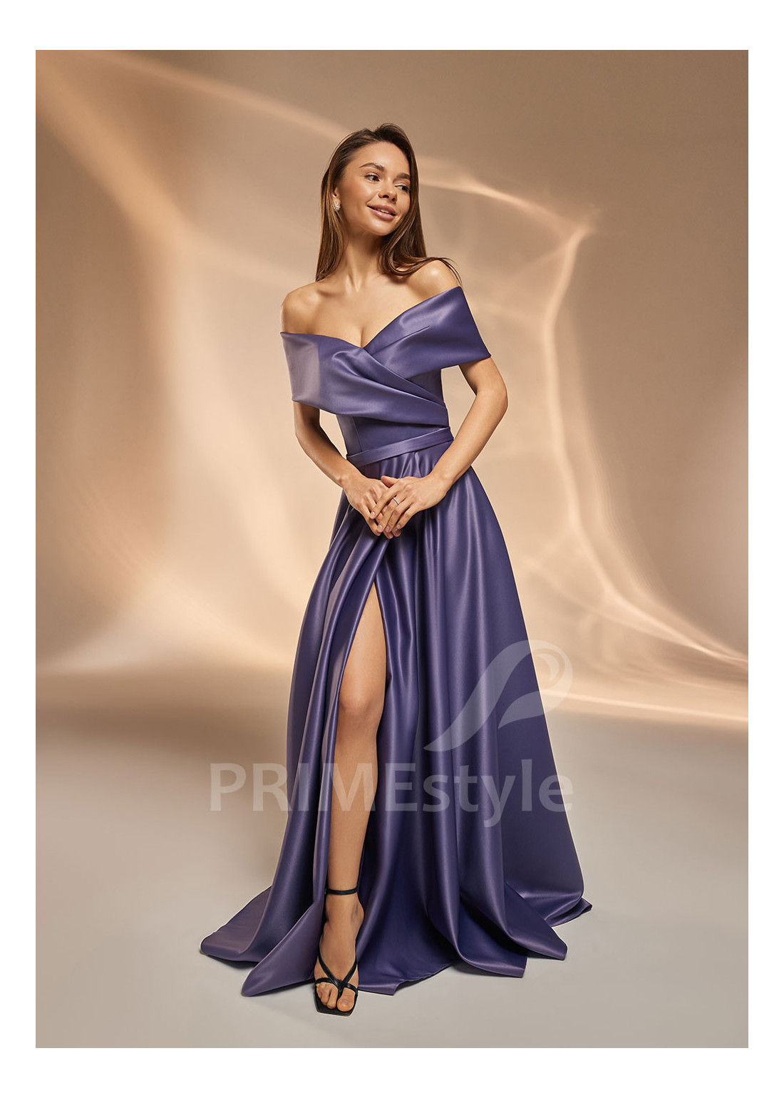 Elegantné spoločenské šaty s otvoreným dekoltom a so širokými padnutými rukávmi. Elegantná A-čková sukňa s rázporkom na pravej nohe. Vhodné aj ako popolnočné šaty.
