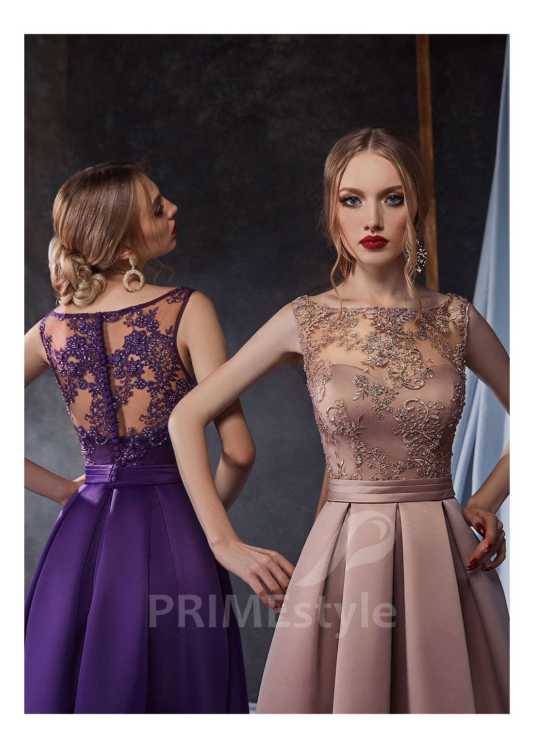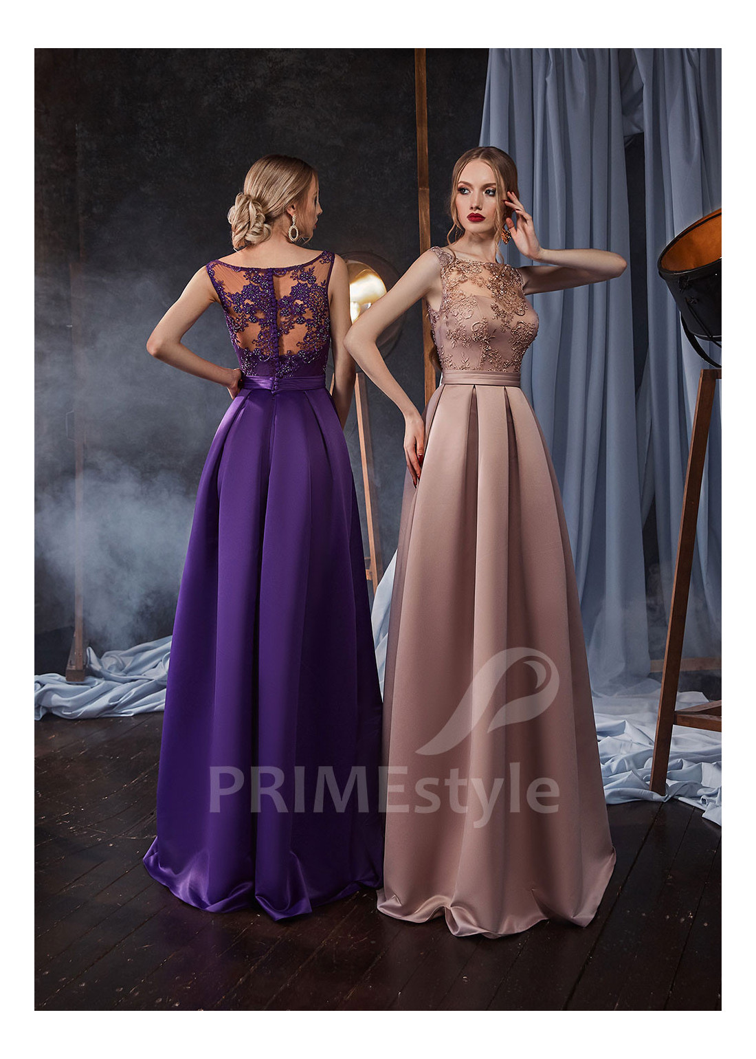 Decentné saténové spoločenské šaty s lodičkovým výstrihom na hrudi, prekrytým chrbtom a padavou pekne tvarovanou sukňou. Korzet je zdobený vašívanou čipkou s jemným vzorom. Vhodné aj ako šaty na ples, šaty na svadbu a popolnočné šaty.