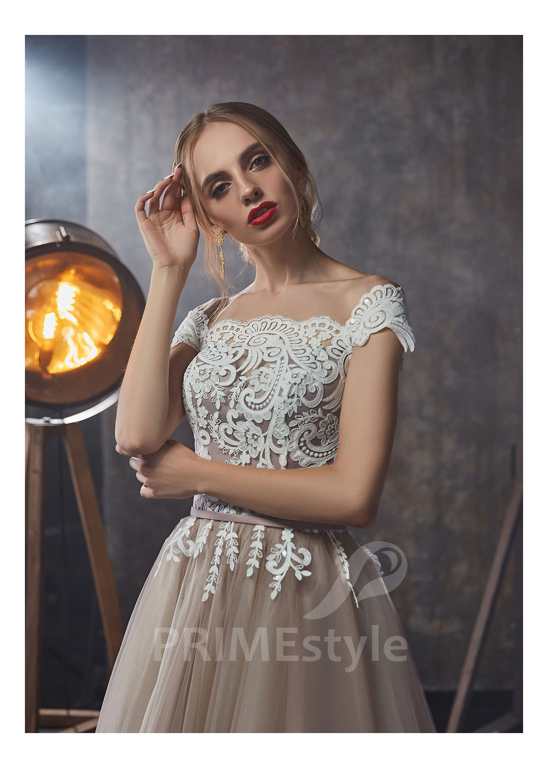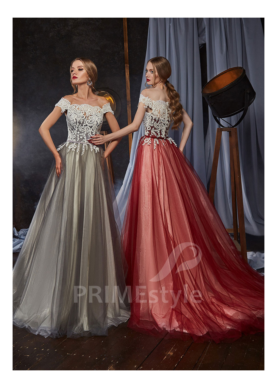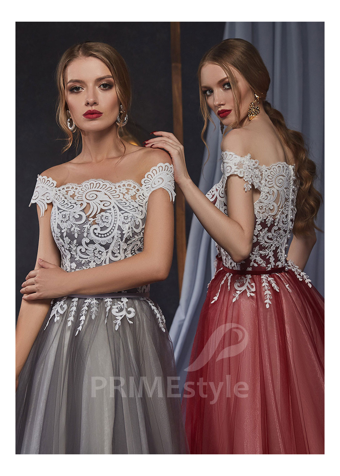 Romantické spoločenské šaty s padnutými ramienkami, bohato zdobeným korzetom, mierne odhaleným chrbtom a ľahkou padavou tylovou sukňou. Korzet a horná časť sukne sú zdobené čipkou. Vhodné aj ako šaty na ples, šaty na stužkovú a popolnočné šaty.