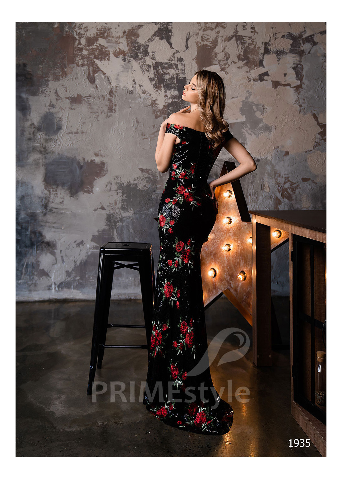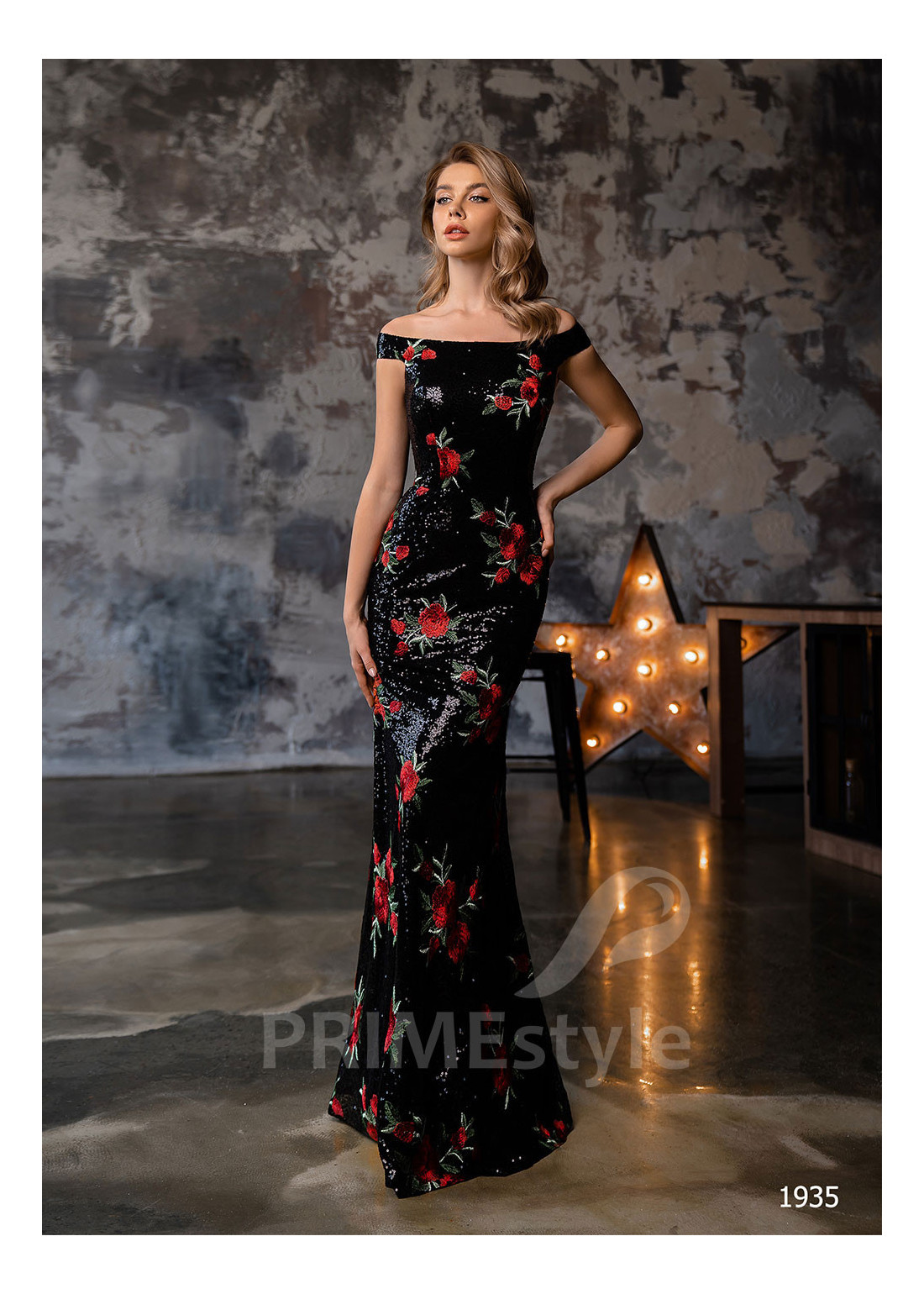 Graciózne celotrblietavé úzke spoločenské šaty s odhalenými ramenami, lodičkovým výstrihom, zahaleným chrbtom a priliehavou krásne tvarovanou sukňou. Vhodné ako šaty na ples, luxusné šaty na stužkovú a popolnočné šaty.