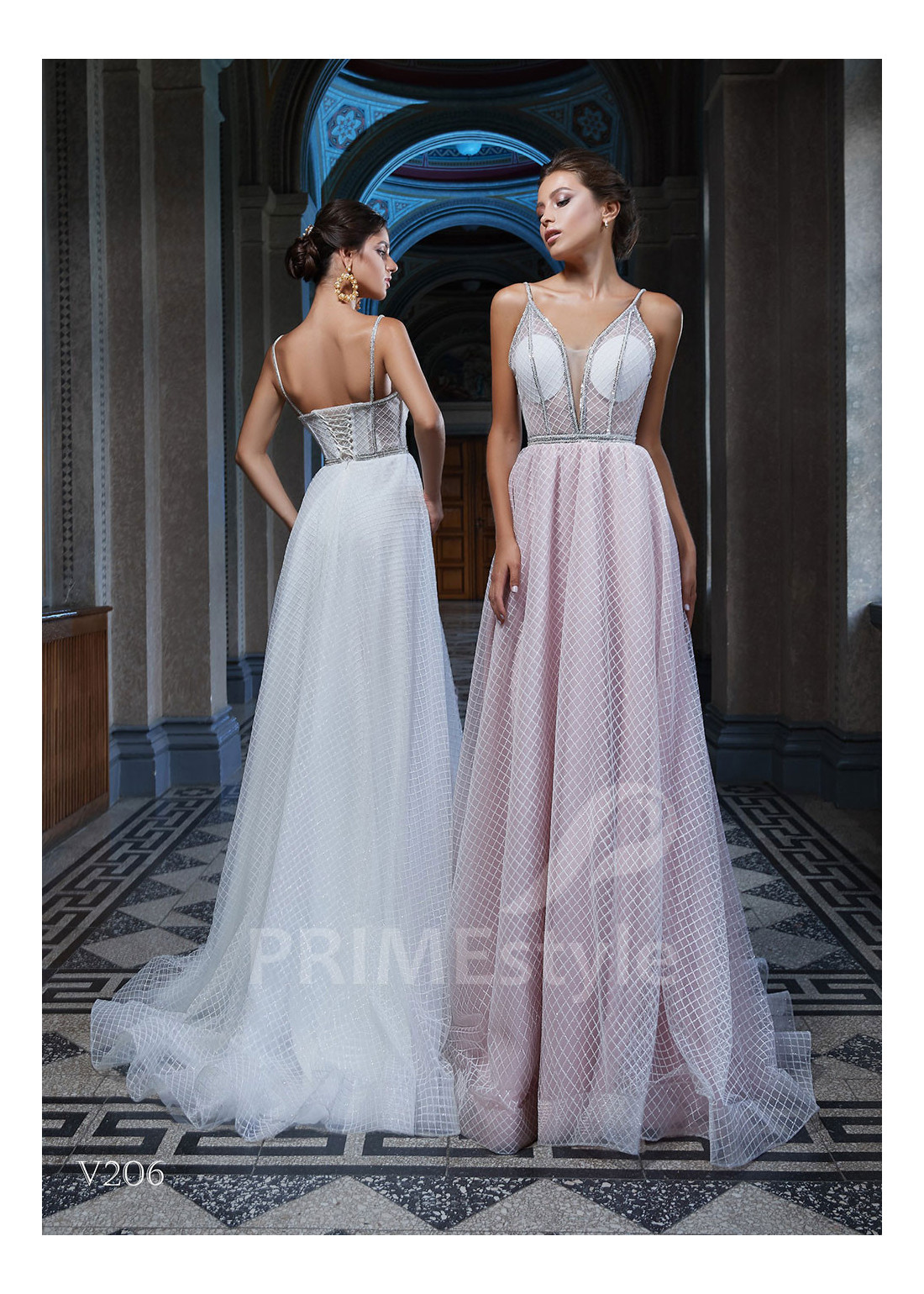 Originálne spoločenské šaty na ramienka s otvoreným dekoltom, odhaleným chrbtom a padavou A-čkovou sukňou. Vhodné aj ako šaty na stužkovú, popolnočné šaty a šaty na svadbu.