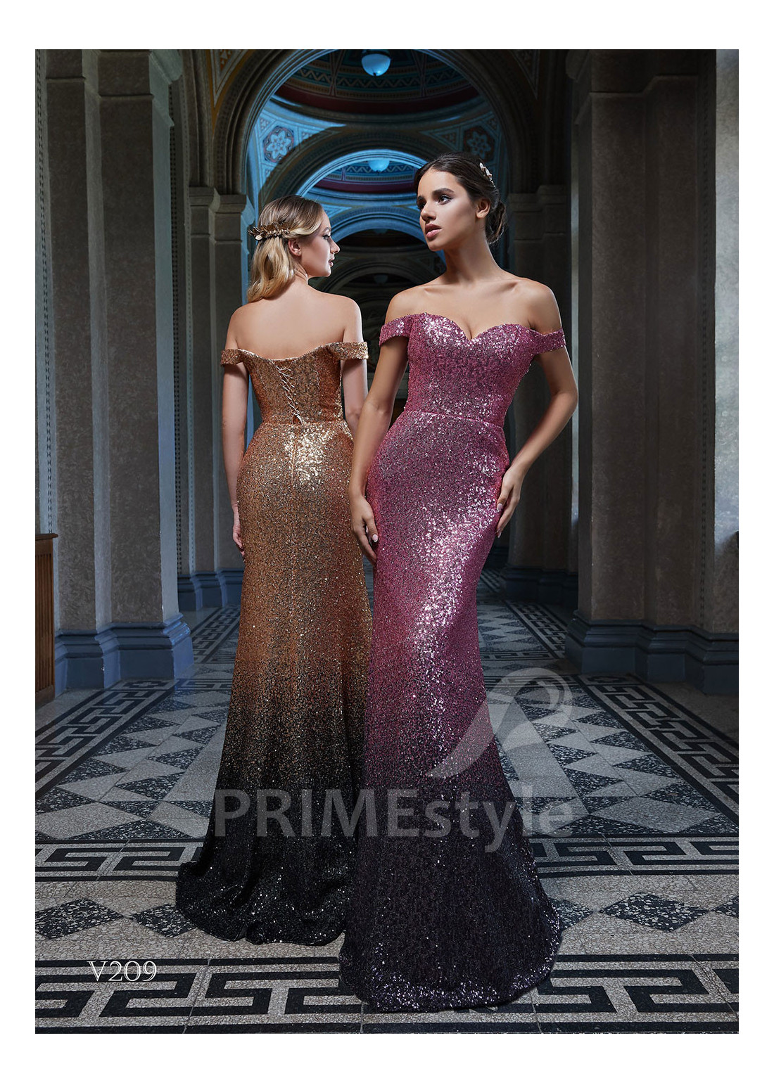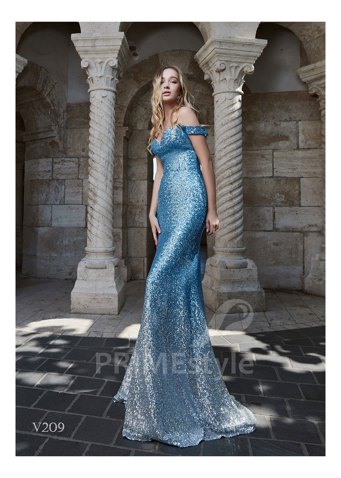 Slávnostné úzke celotrblietavé spoločenské šaty s padnutými ramienkami, trendovým srdiečkovým výstrihom na hrudi, odhaleným chrbtom a pekne tvarovanou priliehavou sukňou. Vhodné ako šaty na ples, šaty na stužkovú, šaty na party a popolnočné šaty.