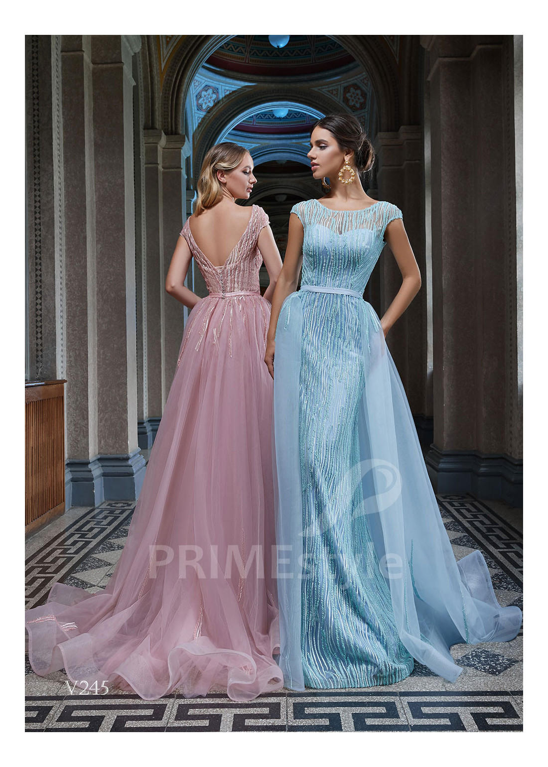 Úzke luxusné trblietavé spoločenské šaty s lodičkovým výstrihom, odhaleným chrbtom a pekne tvarovanou priliehavou sukňou s vzdušnou tylovou vlečkou. Vhodné aj ako šaty na ples, šaty na stužkovú, popolnočné šaty a šaty pre svadobné mamy.