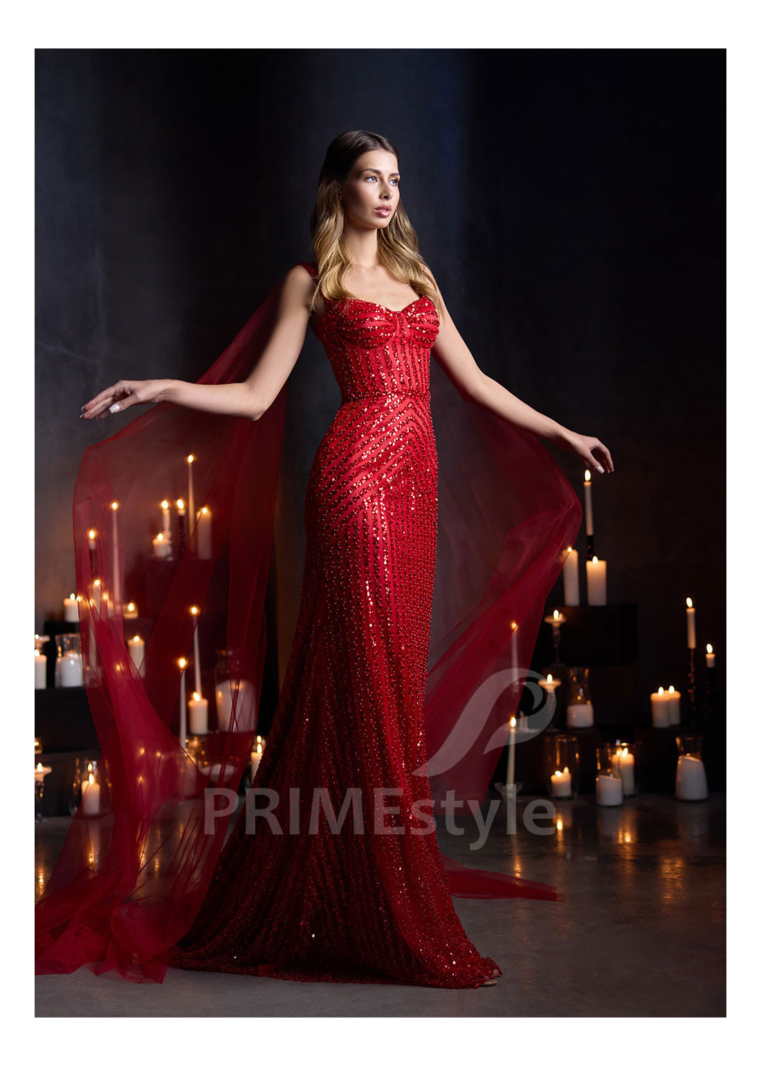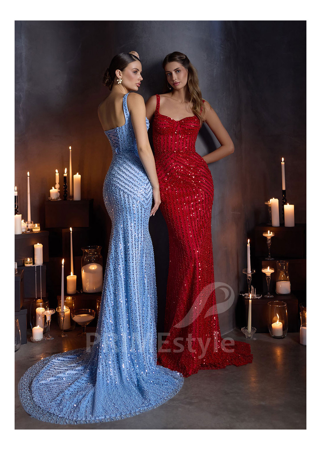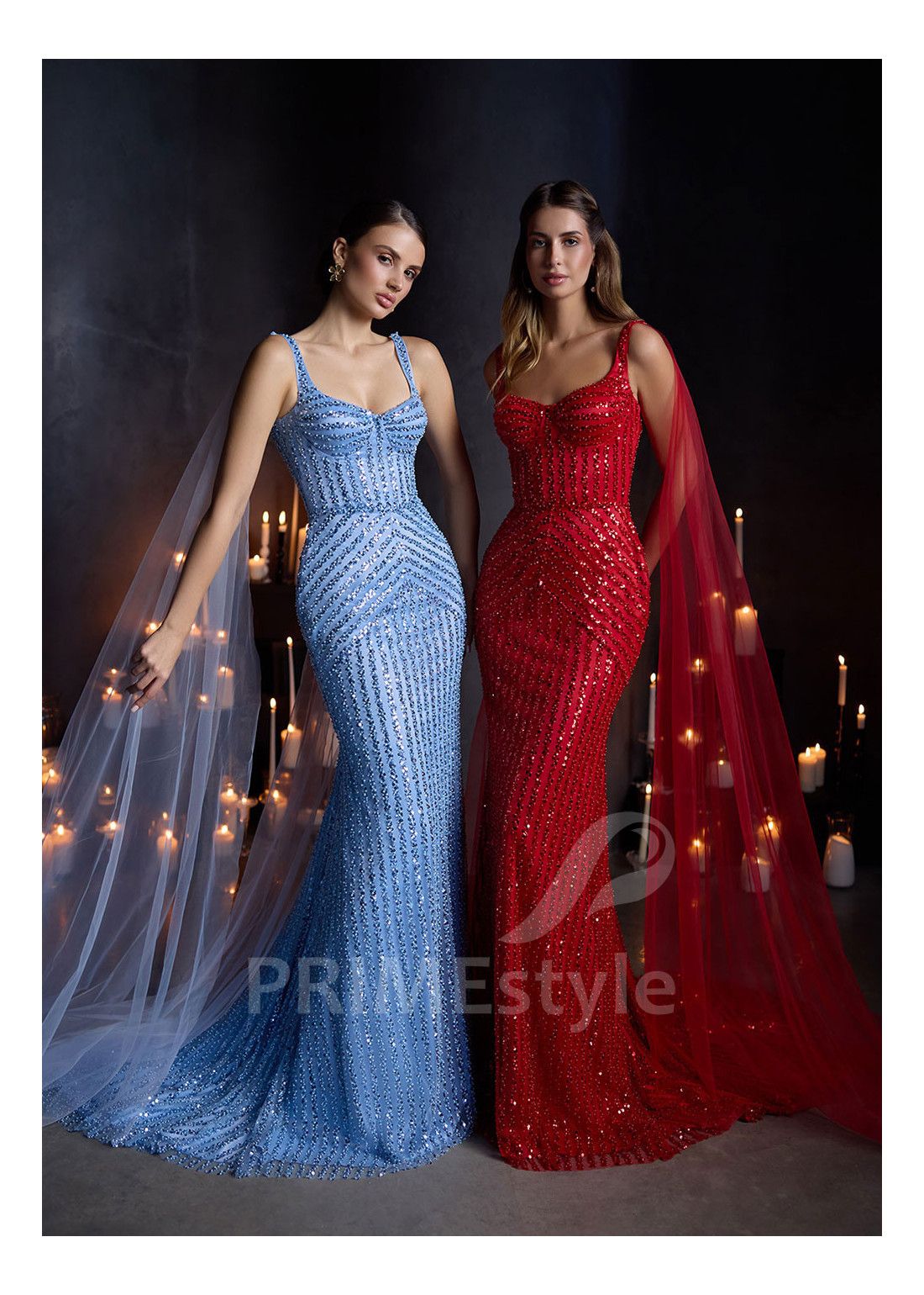 PRIMEstyle®Honosné trblietavé spoločenské šaty na ramienka s otvoreným dekoltom, výstrihom do V-čka, odhaleným chrbtom a efektnou úzkou sukňou. Vhodné aj ako dlhé večerné šaty.