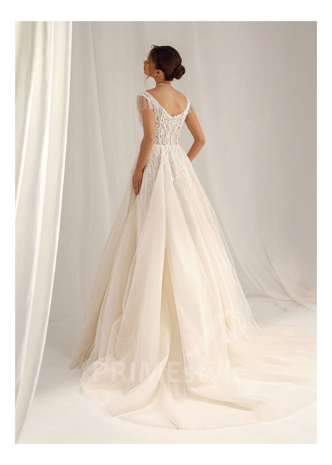 Tento model si môžete objednať v rôznych konfekčných veľkostiach buď s vlečkou alebo bez. Ak máte atypickú postavu, pri výbere veľkosti odporúčame zvoliť opciu "Šitie na mieru" (za šitie svadobných šiat na mieru účtujeme príplatok 50 Eur).