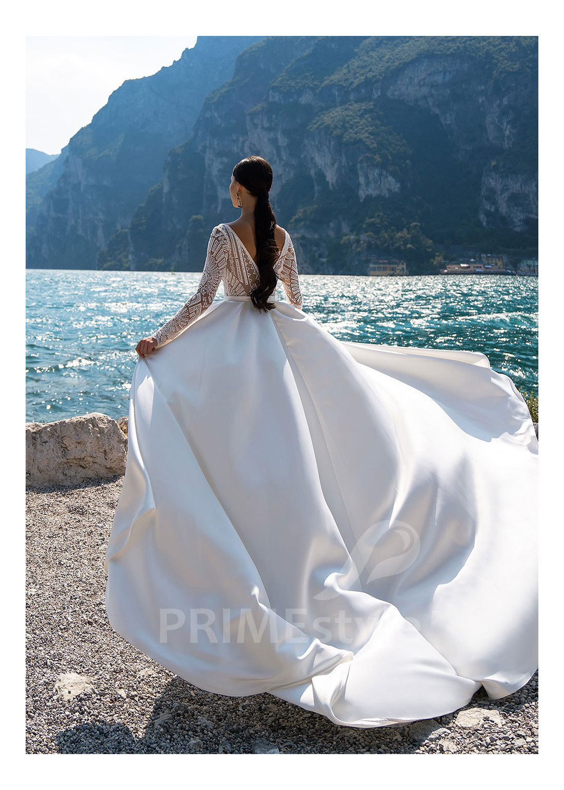 Tento model si môžete objednať v rôznych konfekčných veľkostiach buď s vlečkou alebo bez. Ak máte atypickú postavu, pri výbere veľkosti odporúčame zvoliť opciu "Šitie na mieru" (za šitie svadobných šiat na mieru účtujeme príplatok 50 Eur).