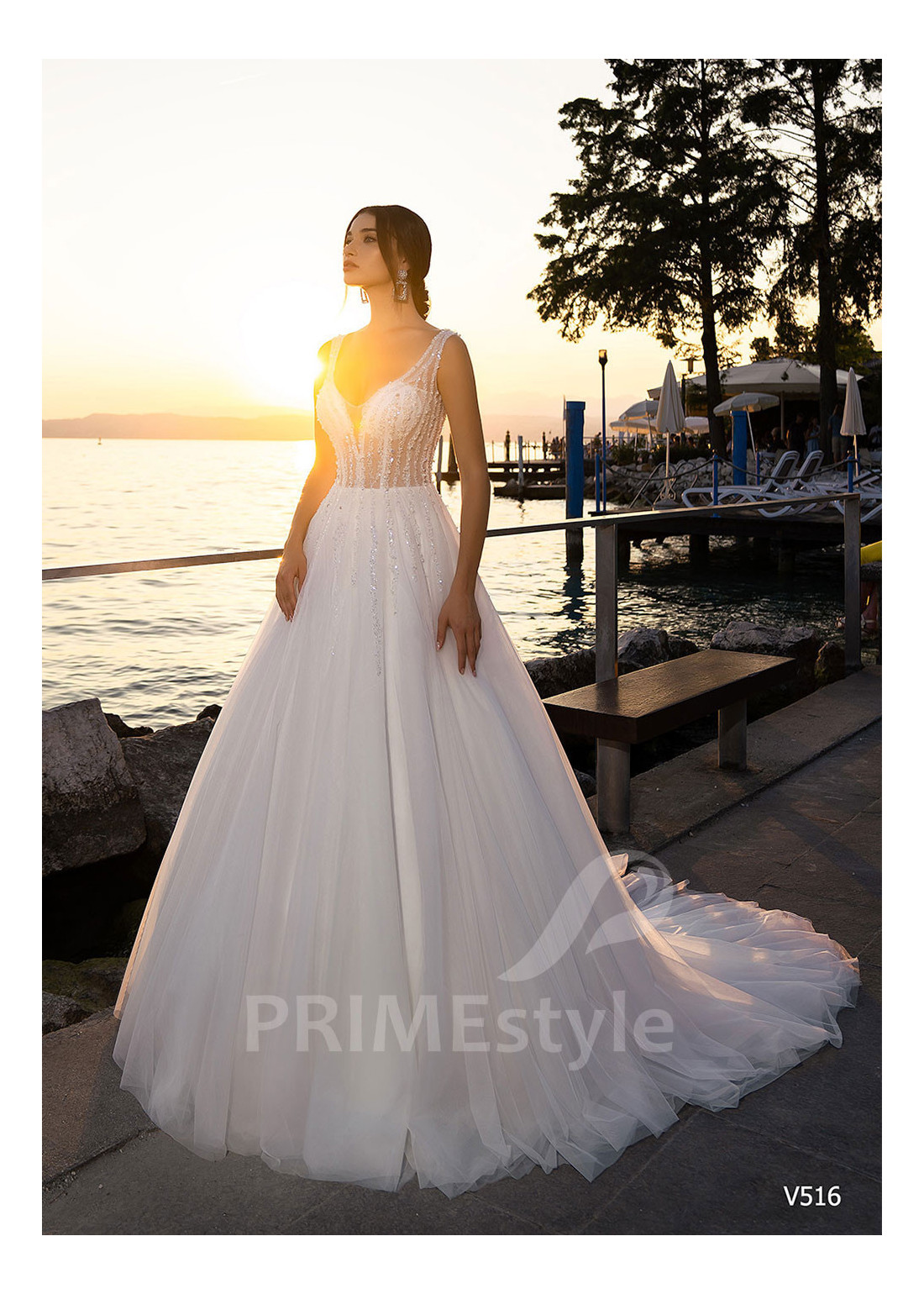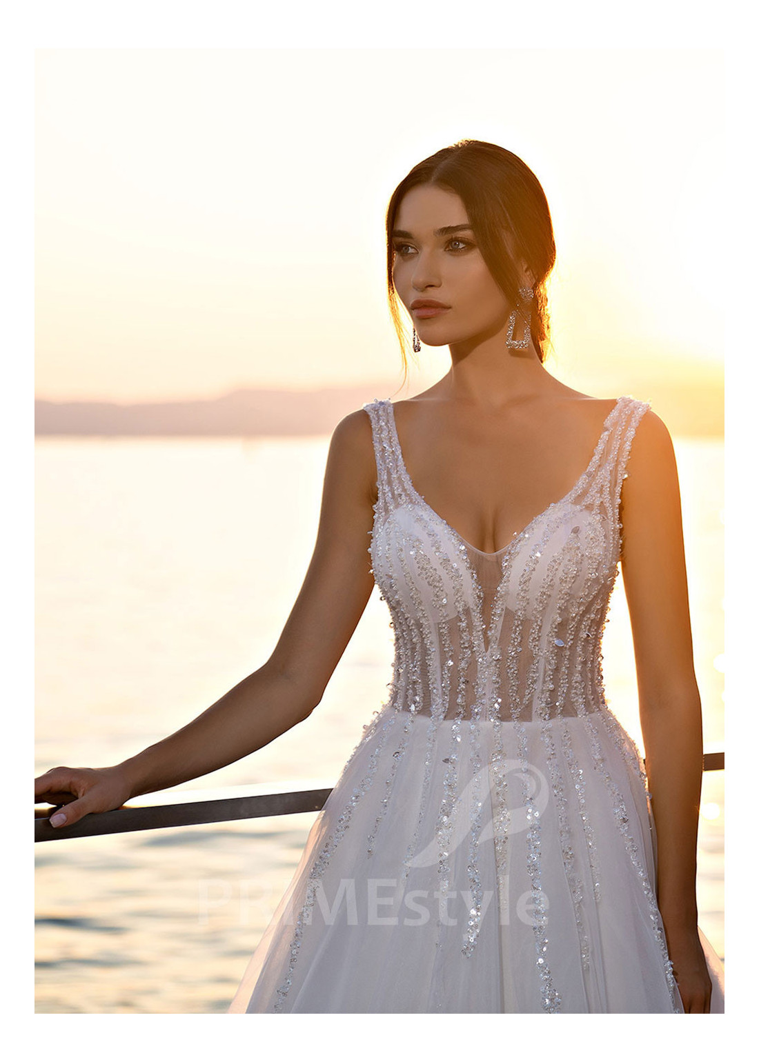 Jednoduché trblietavé svadobné šaty LS516