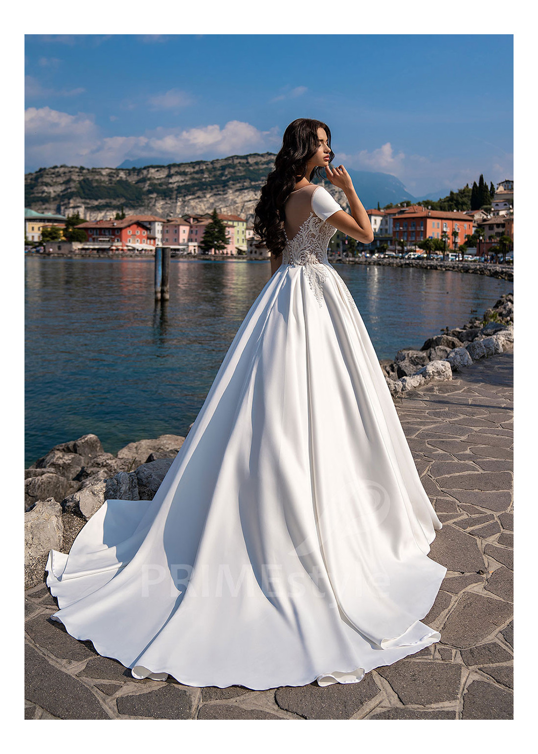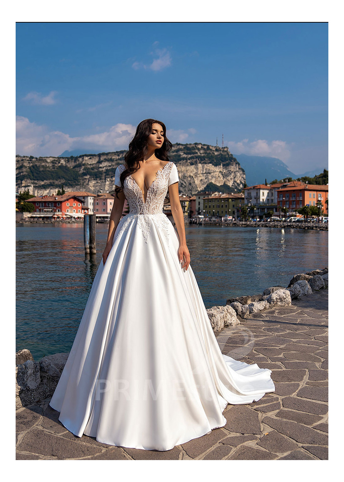 Tento model si môžete objednať v rôznych konfekčných veľkostiach buď s vlečkou alebo bez. Ak máte atypickú postavu, pri výbere veľkosti odporúčame zvoliť opciu "Šitie na mieru" (za šitie svadobných šiat na mieru účtujeme príplatok 50 Eur).