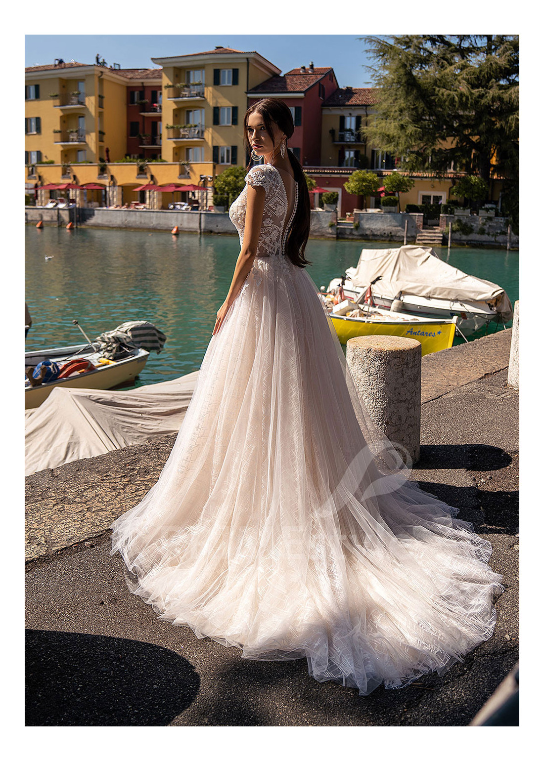 Tento model si môžete objednať v rôznych konfekčných veľkostiach buď s vlečkou alebo bez. Ak máte atypickú postavu, pri výbere veľkosti odporúčame zvoliť opciu "Šitie na mieru" (za šitie svadobných šiat na mieru účtujeme príplatok 50 Eur).