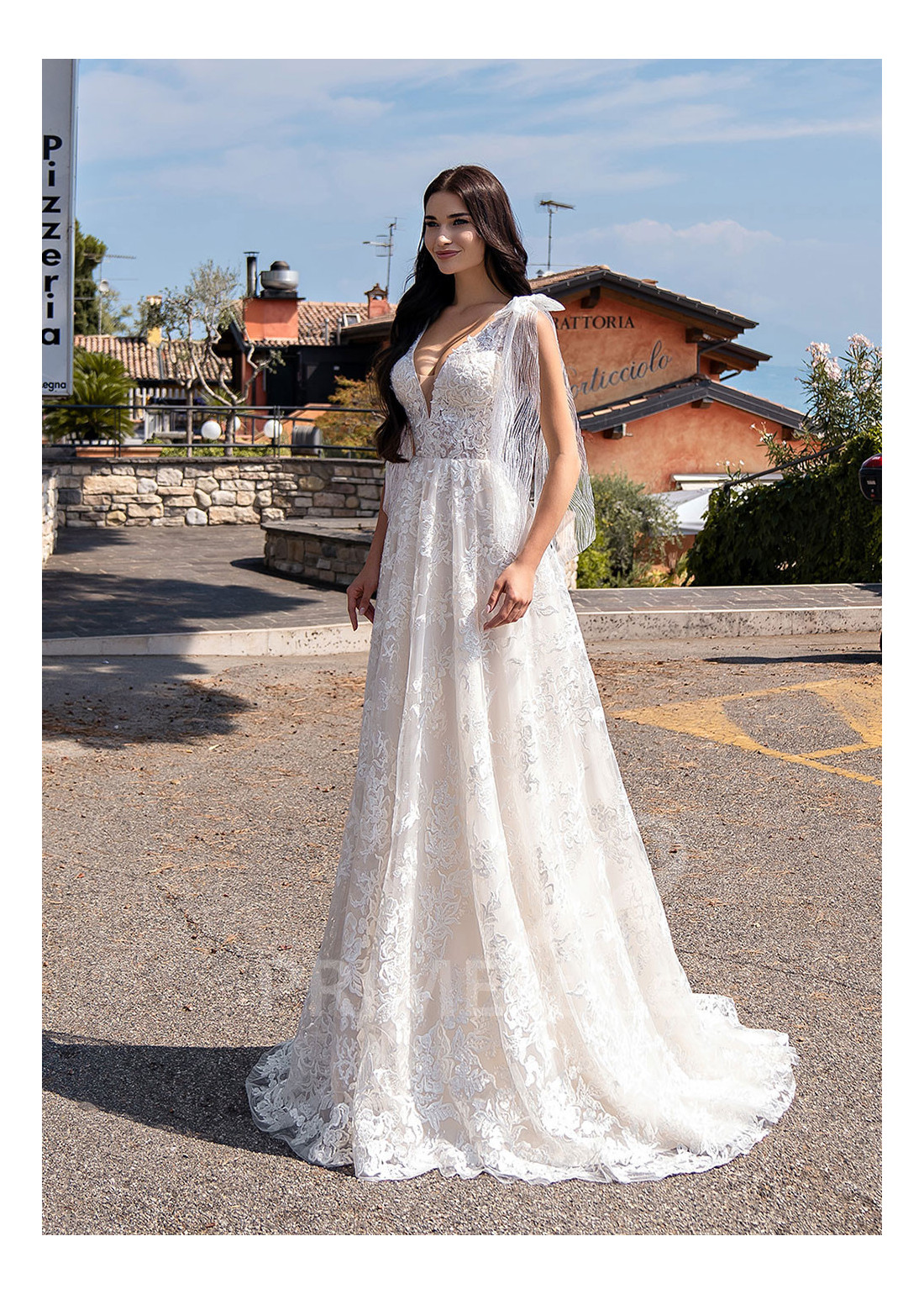 Tento model si môžete objednať v rôznych konfekčných veľkostiach buď s vlečkou alebo bez. Ak máte atypickú postavu, pri výbere veľkosti odporúčame zvoliť opciu "Šitie na mieru" (za šitie svadobných šiat na mieru účtujeme príplatok 50 Eur).