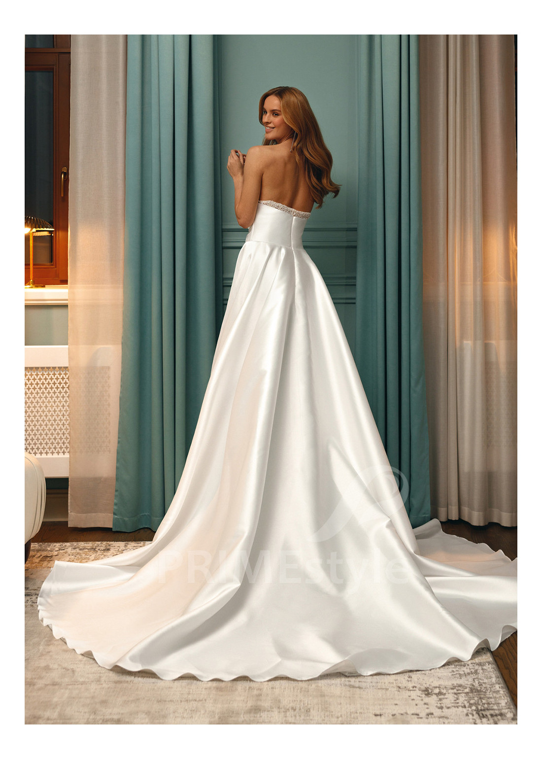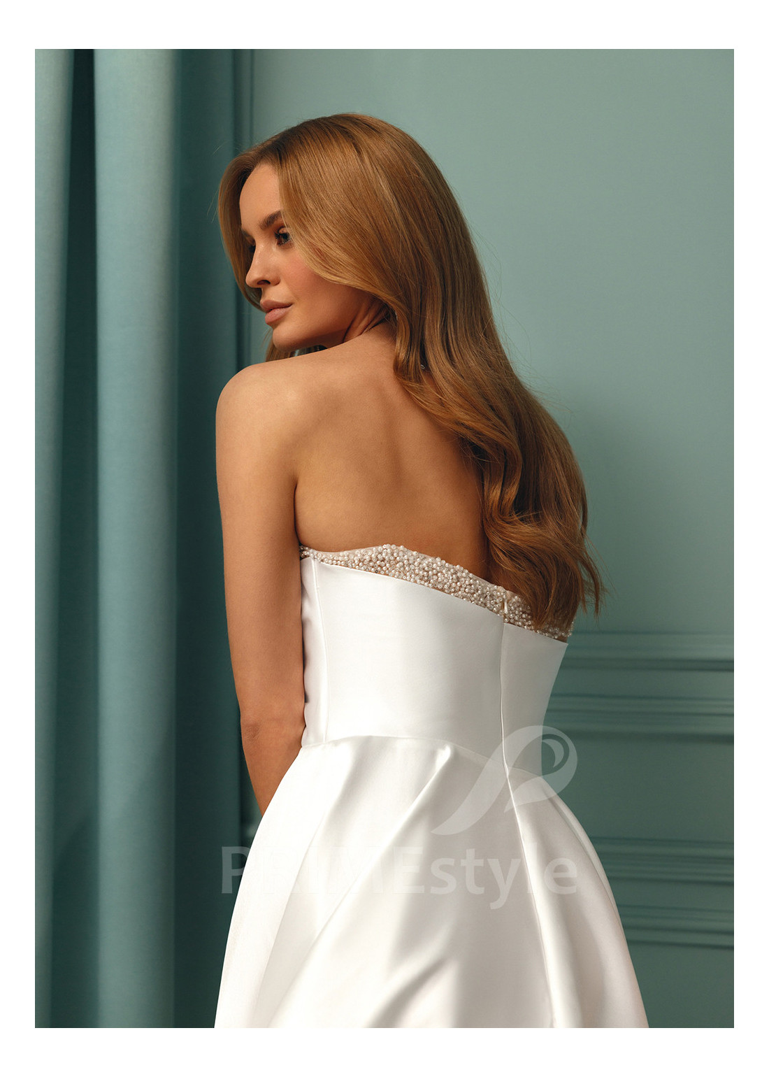 Tento model si môžete objednať v rôznych konfekčných veľkostiach buď s vlečkou alebo bez. Ak máte atypickú postavu, pri výbere veľkosti odporúčame zvoliť opciu "Šitie na mieru" (za šitie svadobných šiat na mieru účtujeme príplatok 50 Eur).