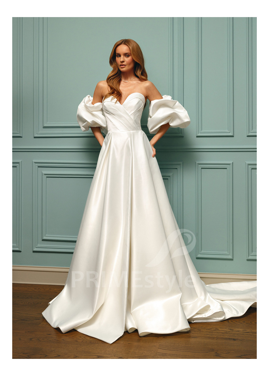 Tento model si môžete objednať v rôznych konfekčných veľkostiach buď s vlečkou alebo bez. Ak máte atypickú postavu, pri výbere veľkosti odporúčame zvoliť opciu "Šitie na mieru" (za šitie svadobných šiat na mieru účtujeme príplatok 50 Eur).
