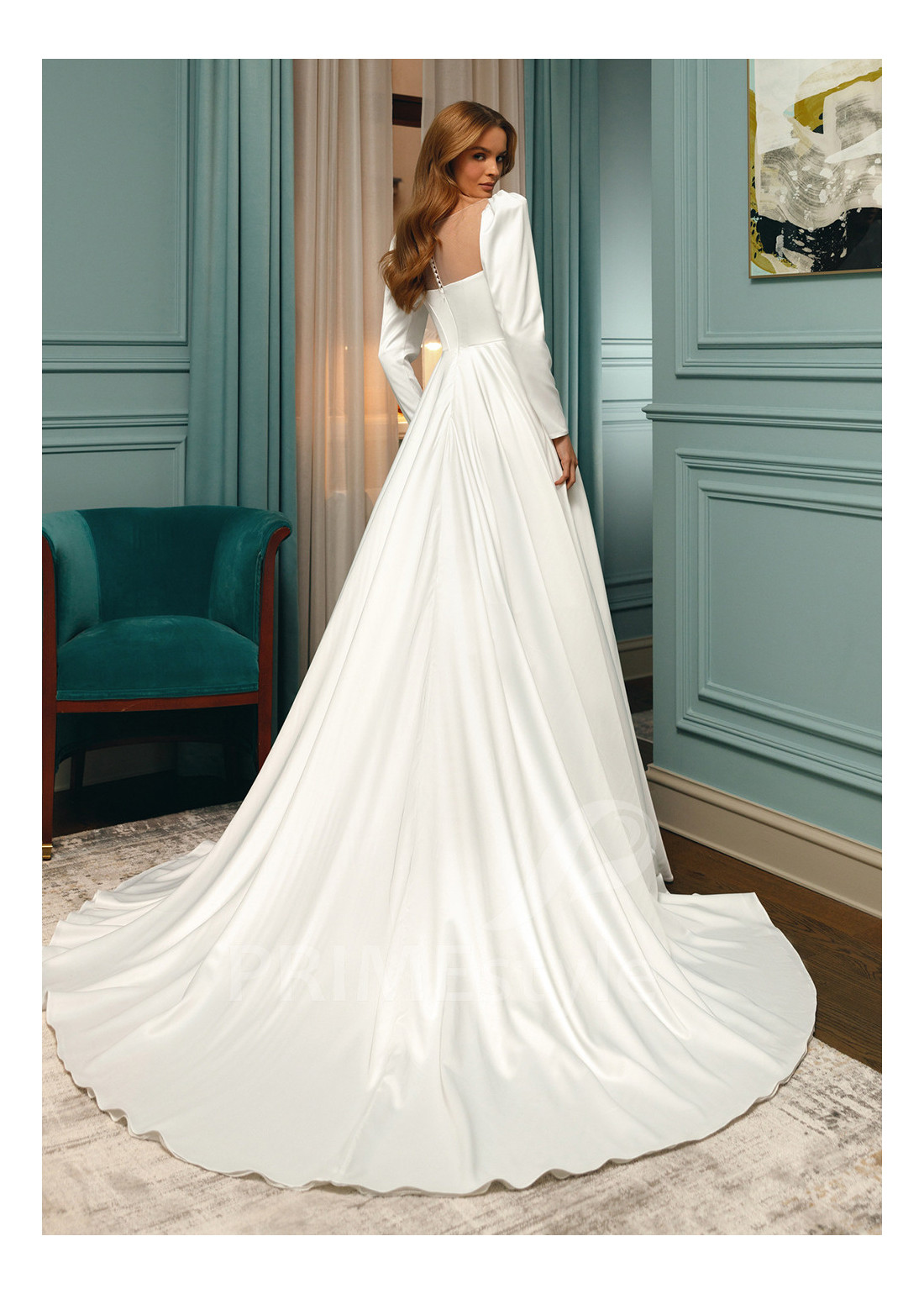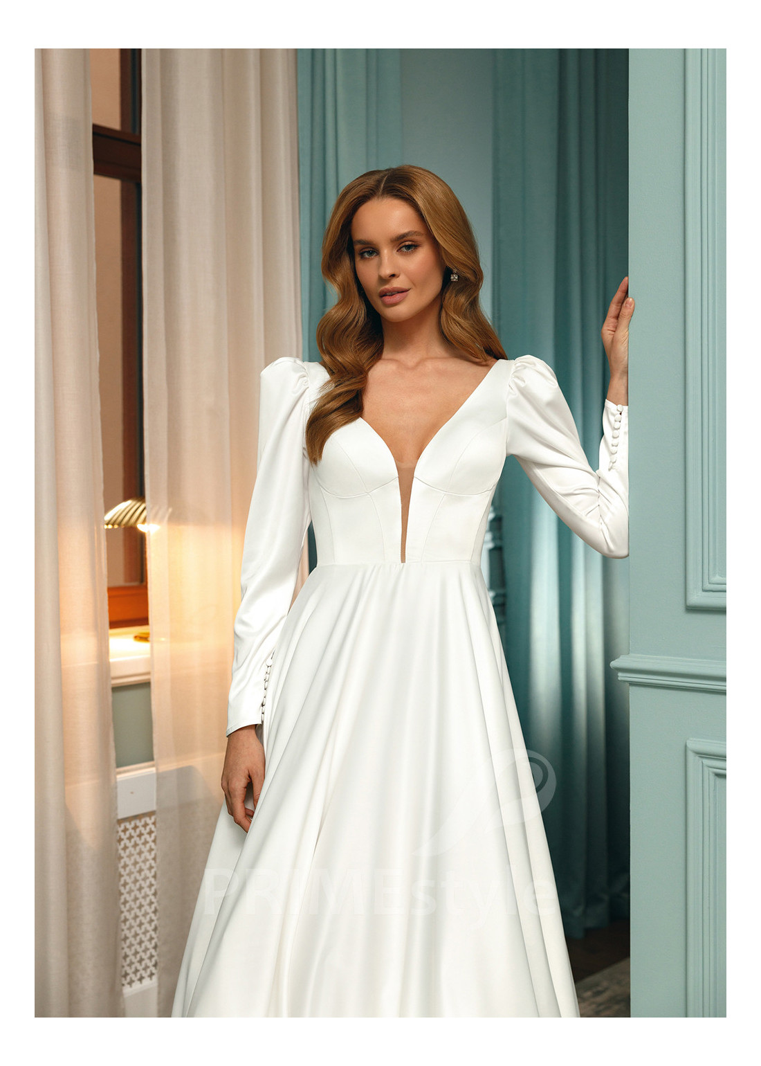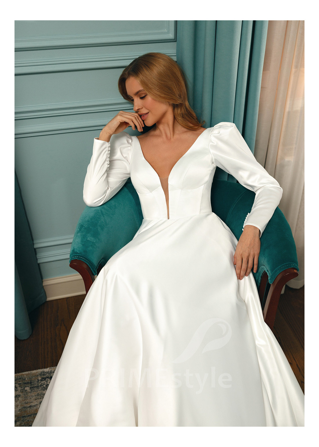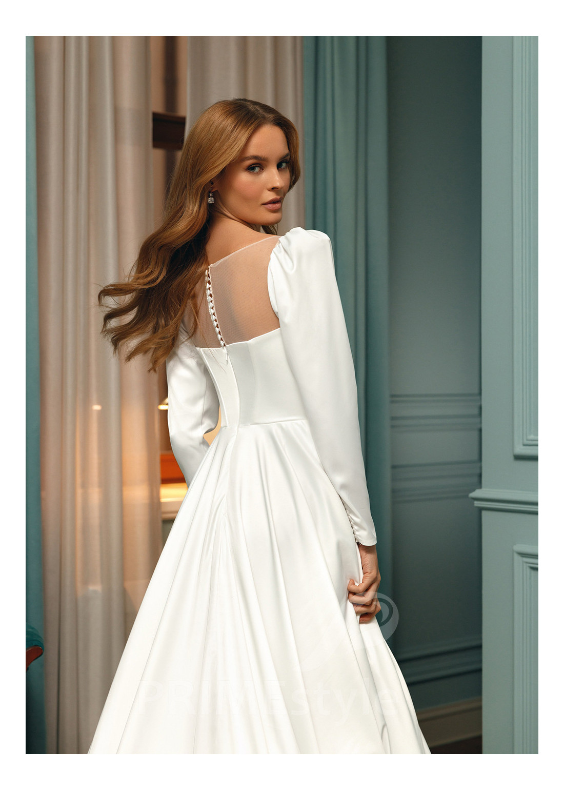 Tento model si môžete objednať v rôznych konfekčných veľkostiach buď s vlečkou alebo bez. Ak máte atypickú postavu, pri výbere veľkosti odporúčame zvoliť opciu "Šitie na mieru" (za šitie svadobných šiat na mieru účtujeme príplatok 50 Eur).