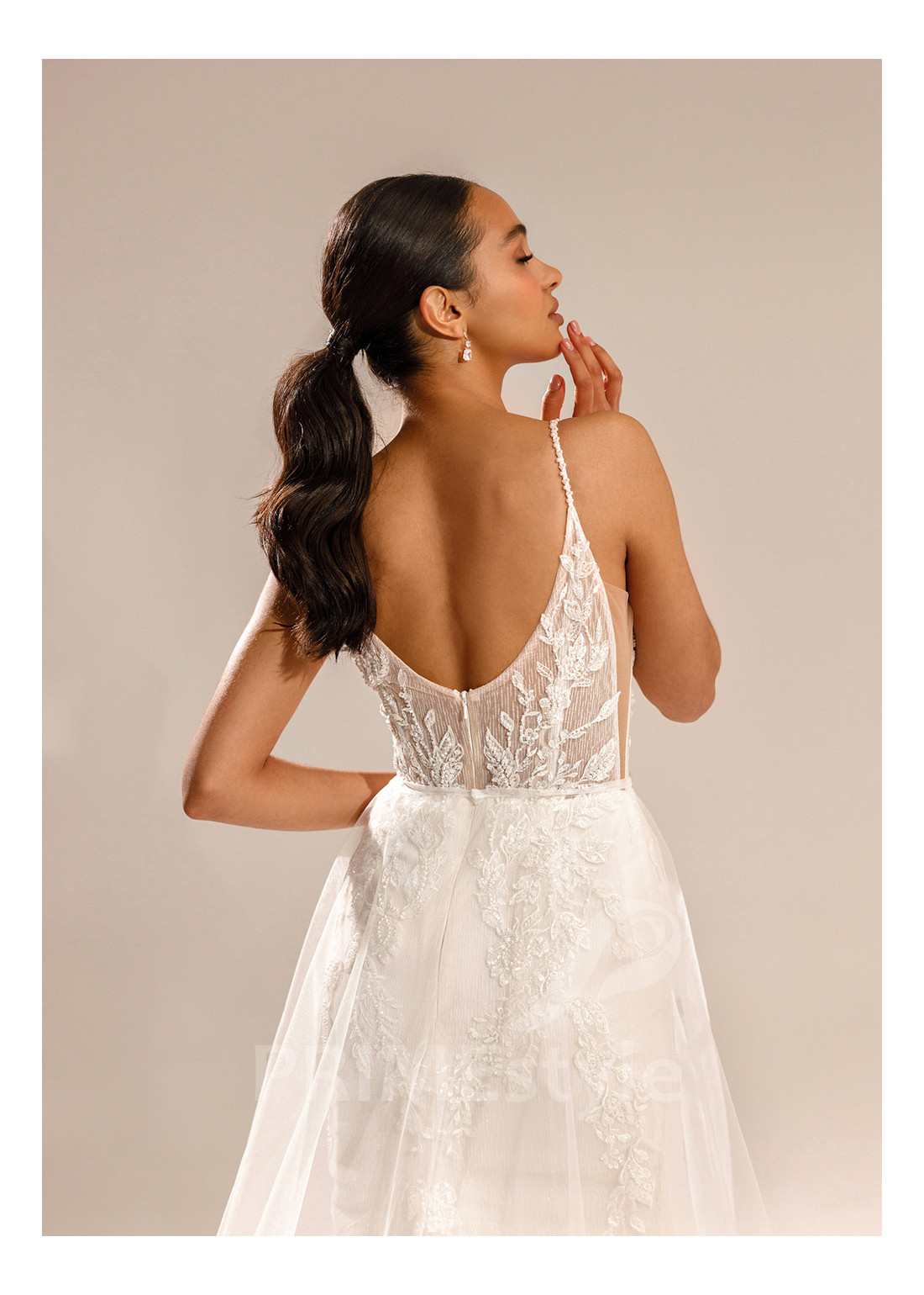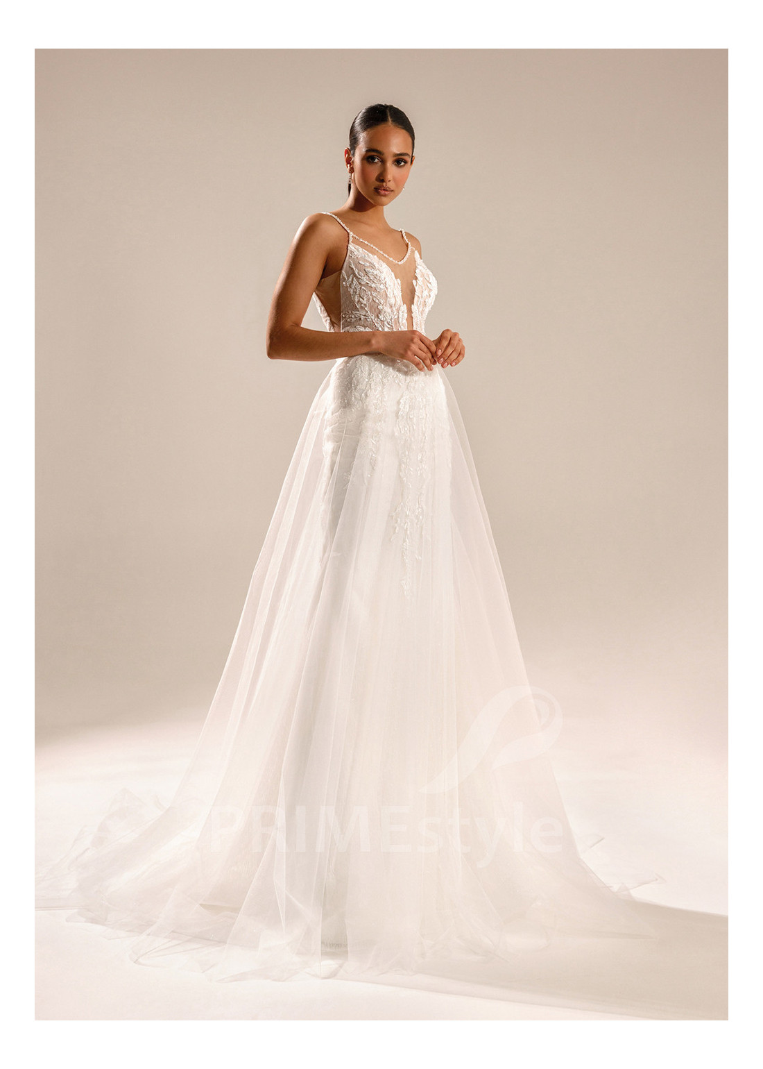 Tento model si môžete objednať v rôznych konfekčných veľkostiach buď s vlečkou alebo bez. Ak máte atypickú postavu, pri výbere veľkosti odporúčame zvoliť opciu "Šitie na mieru" (za šitie svadobných šiat na mieru účtujeme príplatok 50 Eur).