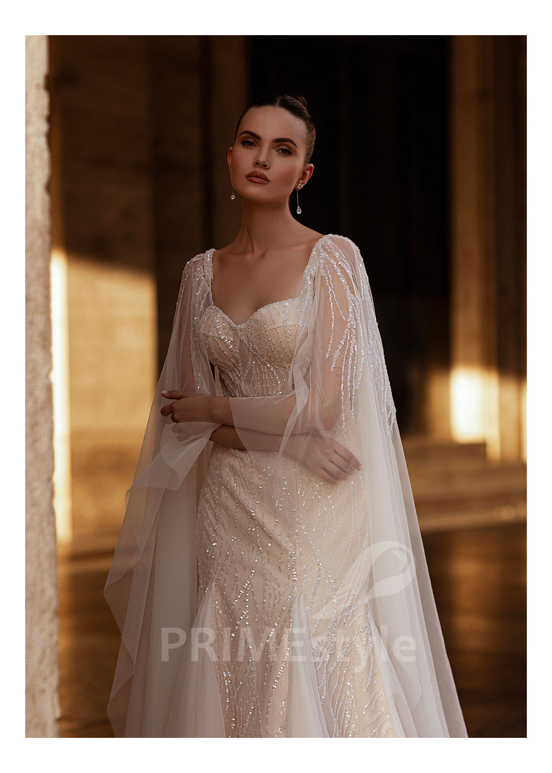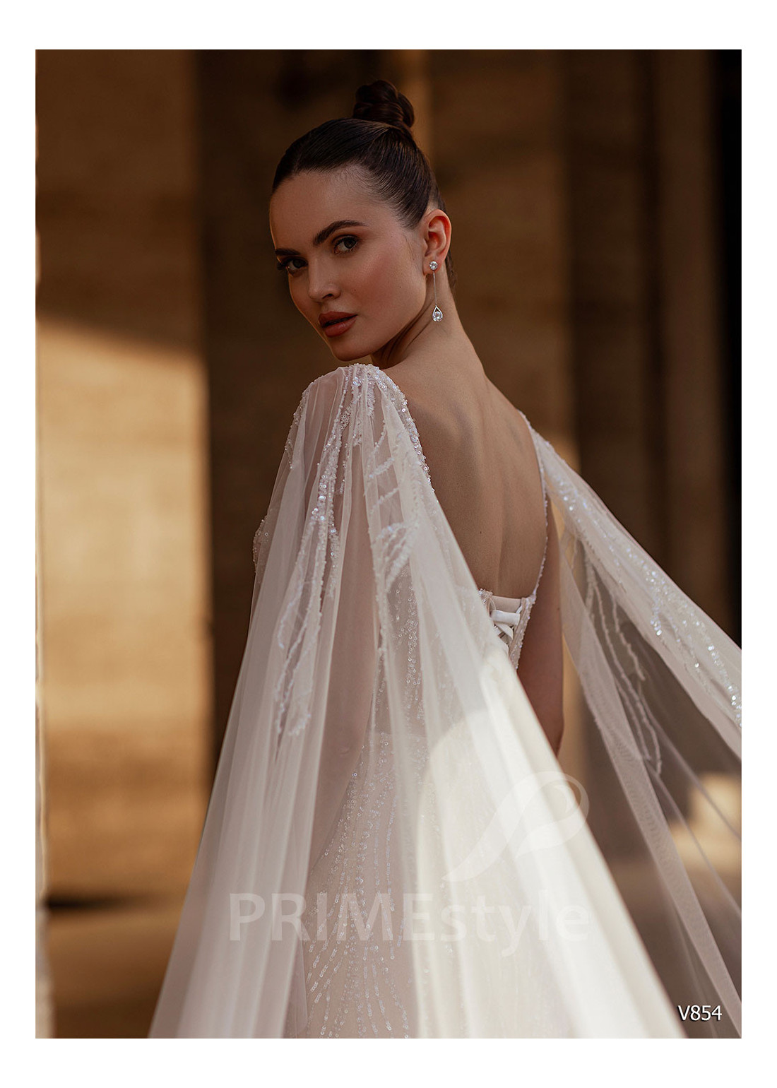 Tento model si môžete objednať v rôznych konfekčných veľkostiach buď s vlečkou alebo bez. Ak máte atypickú postavu, pri výbere veľkosti odporúčame zvoliť opciu "Šitie na mieru" (za šitie svadobných šiat na mieru účtujeme príplatok 50 Eur).