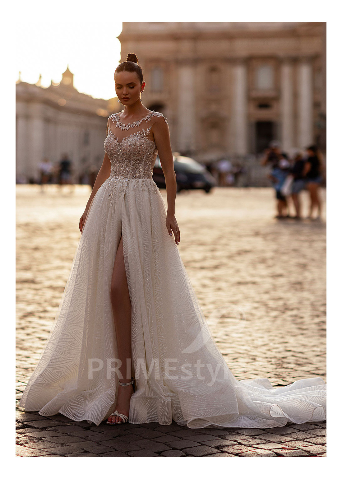 Extravagantné trblietavé svadobné šaty LS869