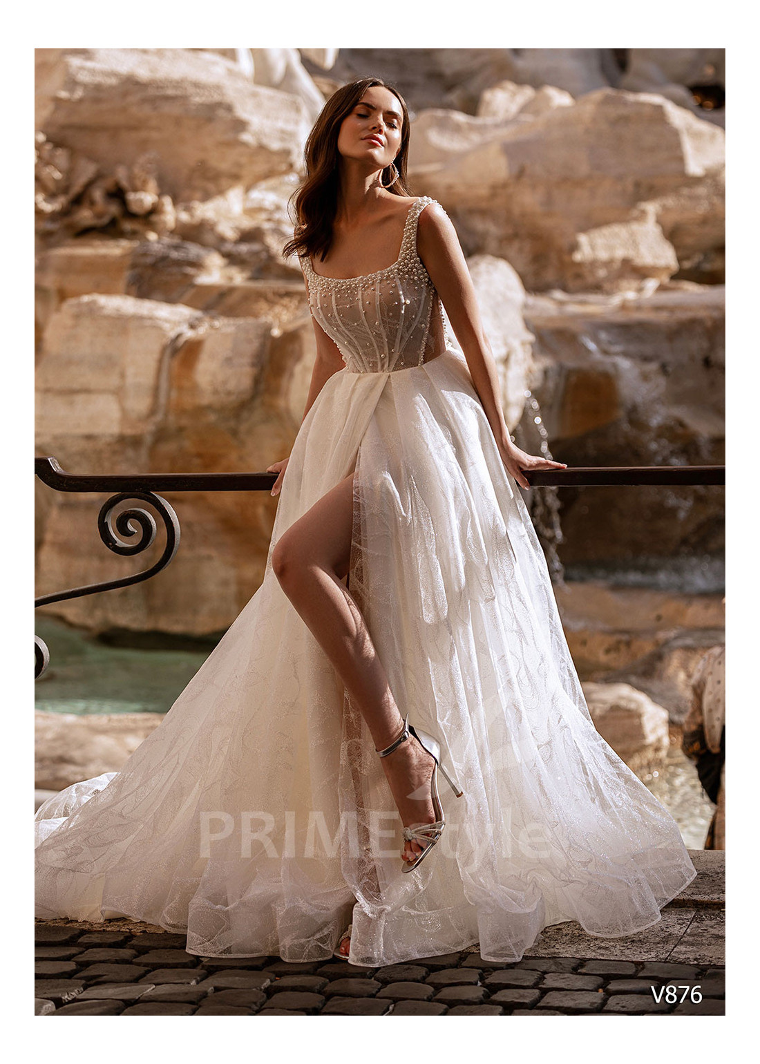 Tento model si môžete objednať v rôznych konfekčných veľkostiach buď s vlečkou alebo bez. Ak máte atypickú postavu, pri výbere veľkosti odporúčame zvoliť opciu "Šitie na mieru" (za šitie svadobných šiat na mieru účtujeme príplatok 50 Eur).