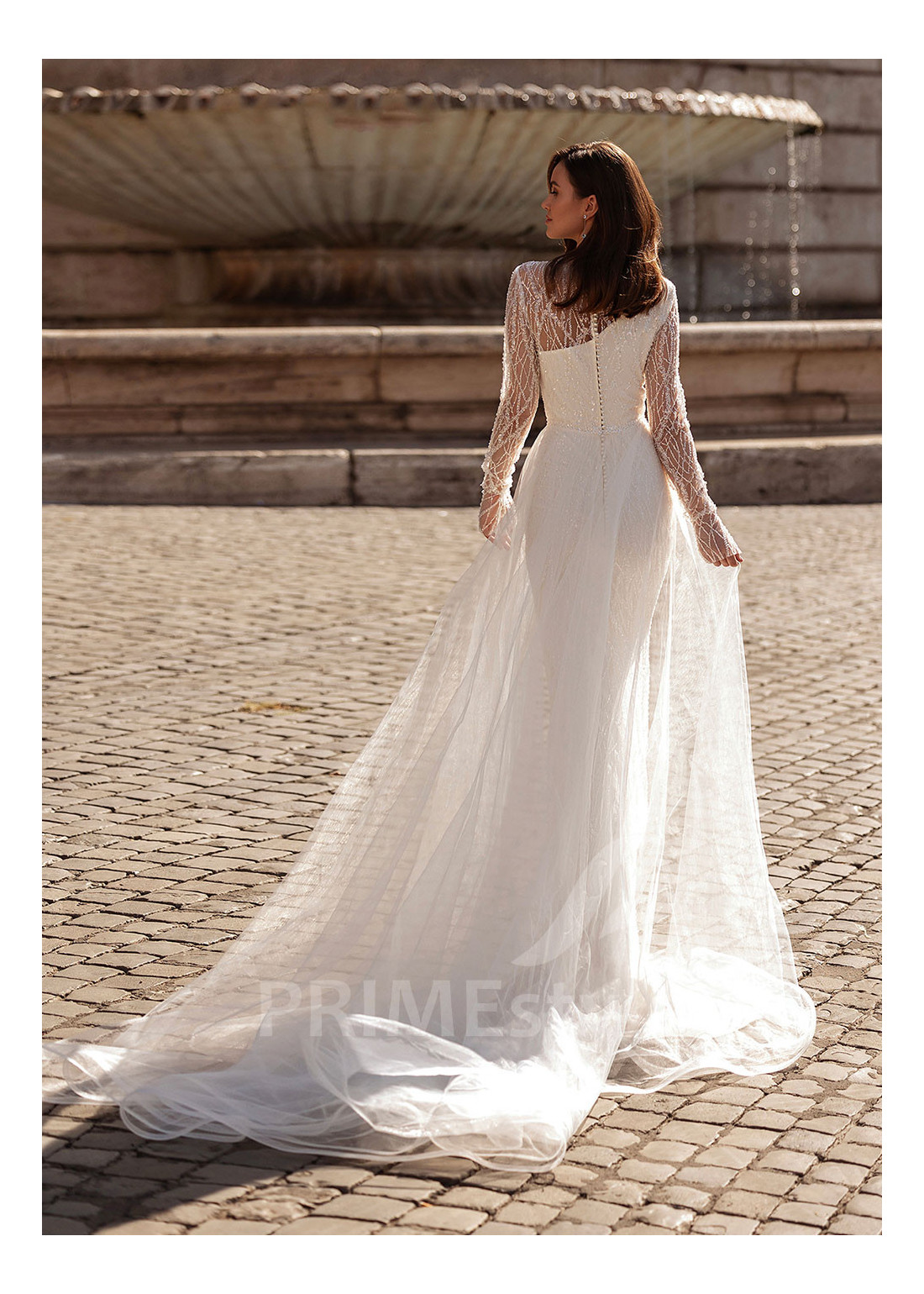 Tento model si môžete objednať v rôznych konfekčných veľkostiach buď s vlečkou alebo bez. Ak máte atypickú postavu, pri výbere veľkosti odporúčame zvoliť opciu "Šitie na mieru" (za šitie svadobných šiat na mieru účtujeme príplatok 50 Eur).