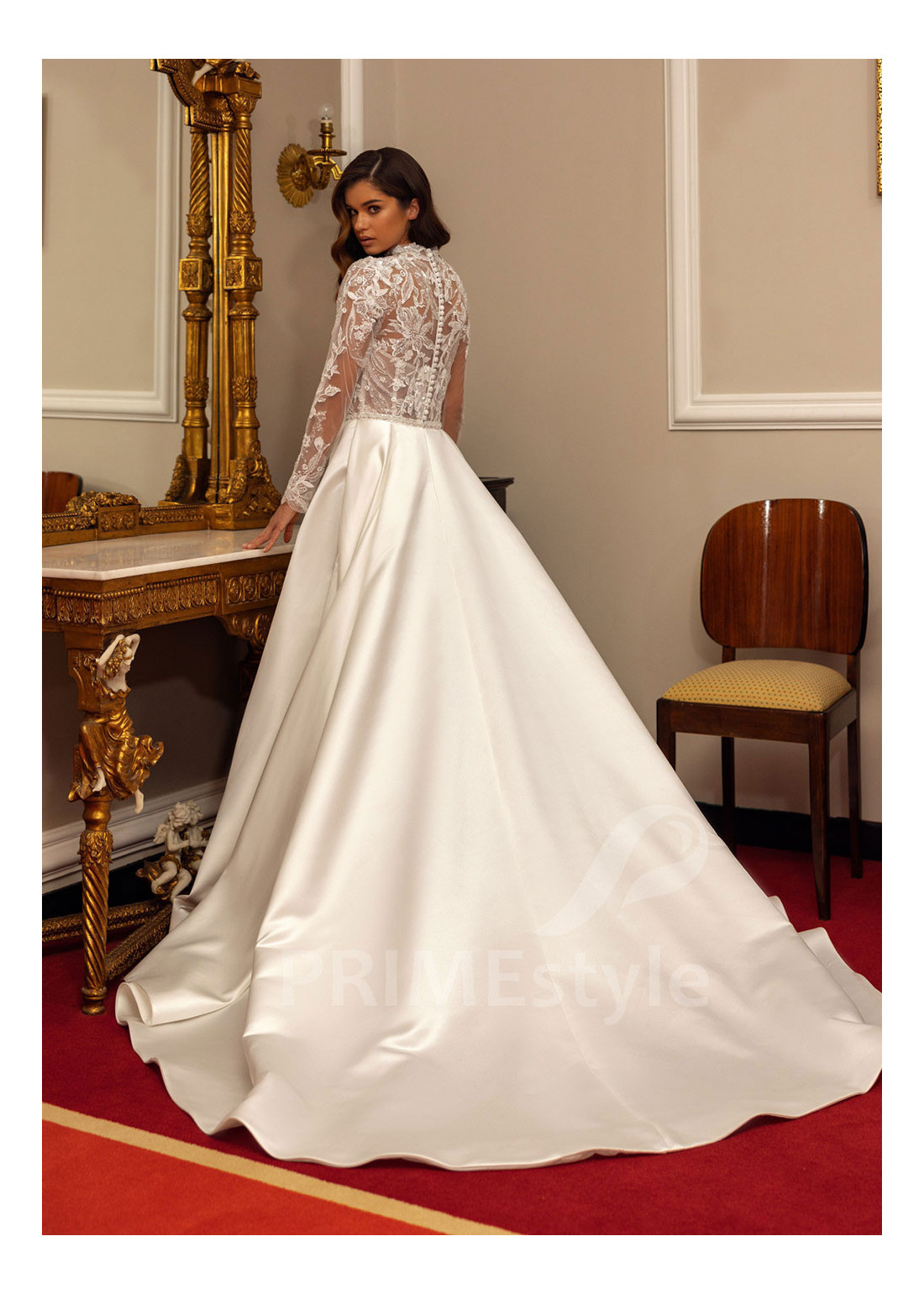 Tento model si môžete objednať v rôznych konfekčných veľkostiach buď s vlečkou alebo bez. Ak máte atypickú postavu, pri výbere veľkosti odporúčame zvoliť opciu "Šitie na mieru" (za šitie svadobných šiat na mieru účtujeme príplatok 50 Eur).