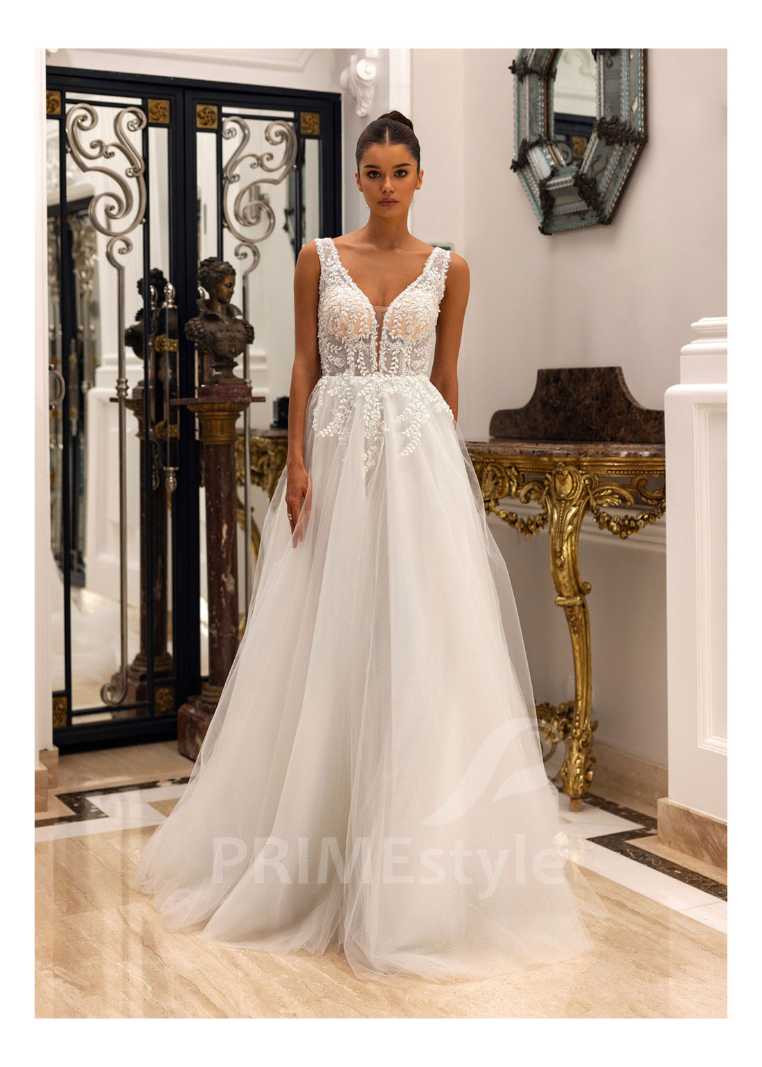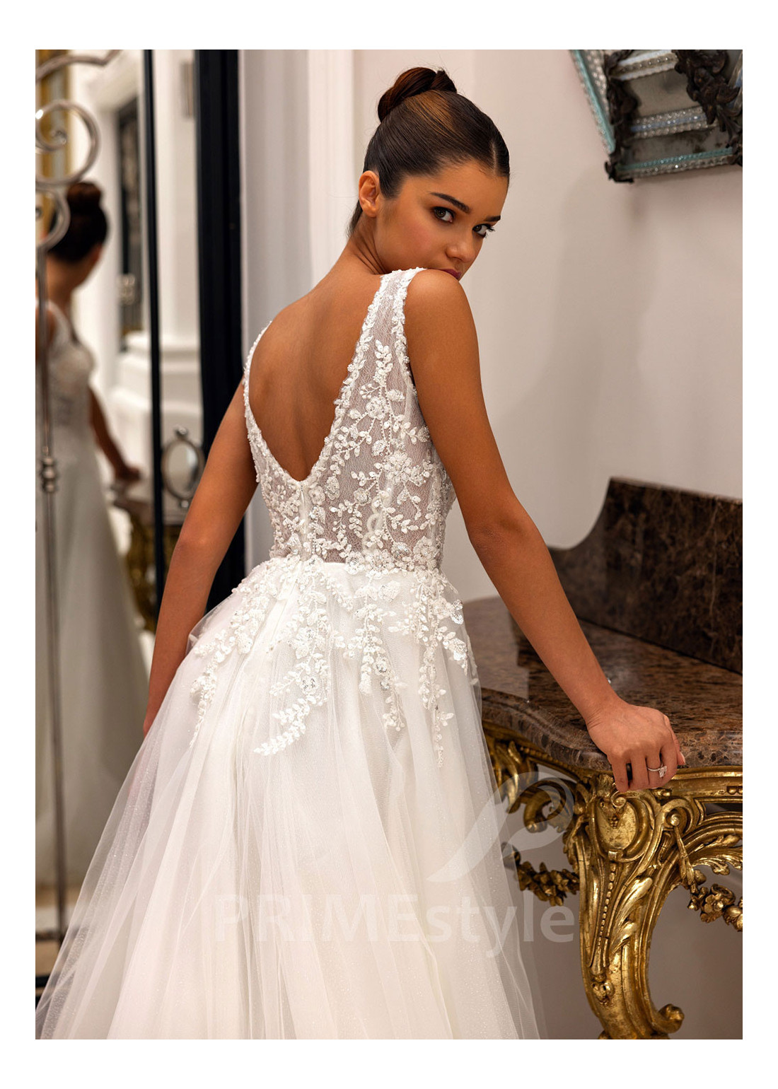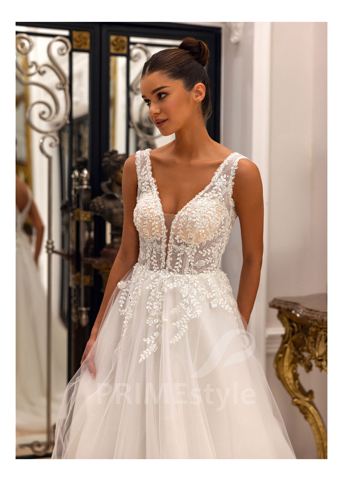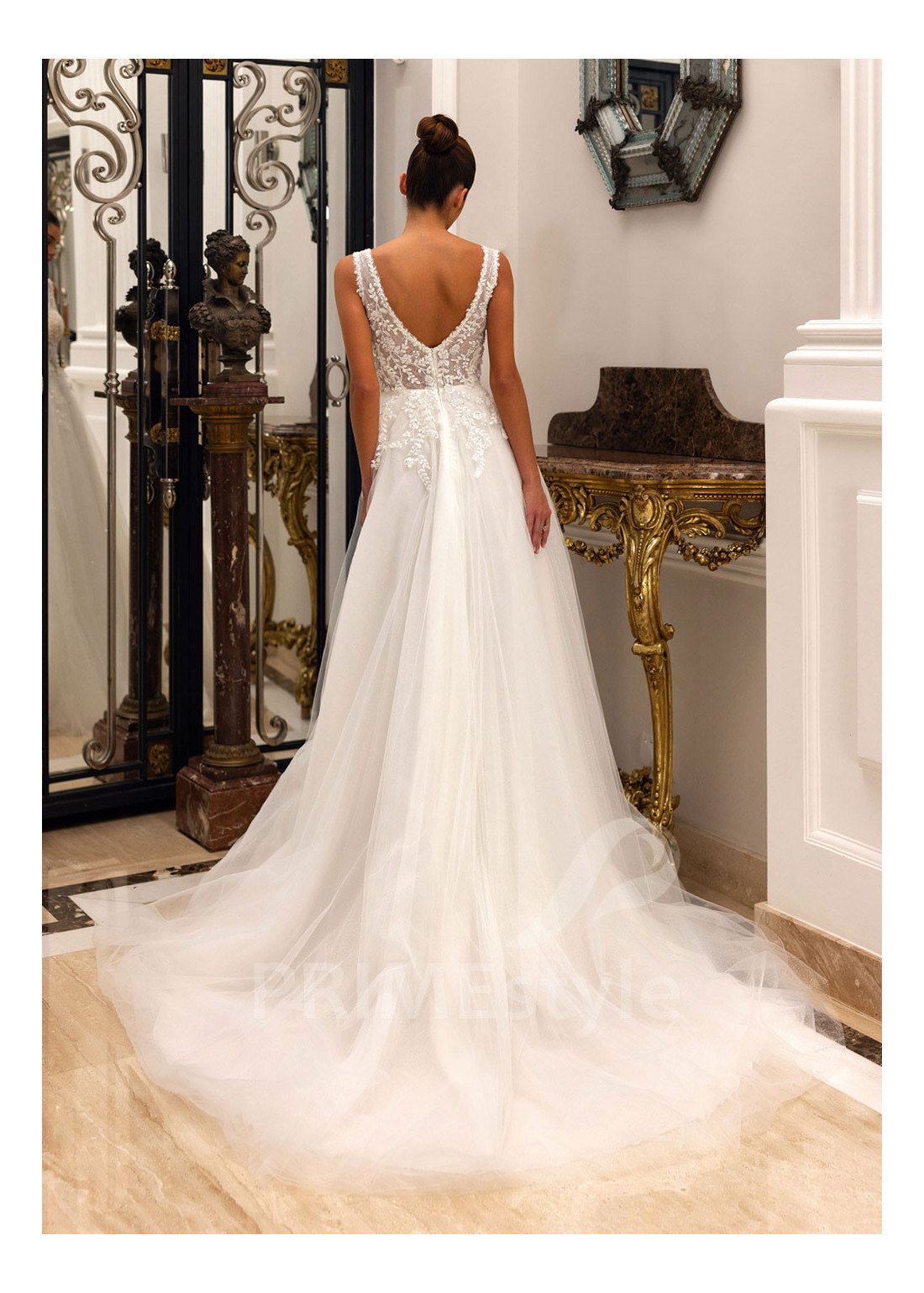 Tento model si môžete objednať v rôznych konfekčných veľkostiach buď s vlečkou alebo bez. Ak máte atypickú postavu, pri výbere veľkosti odporúčame zvoliť opciu "Šitie na mieru" (za šitie svadobných šiat na mieru účtujeme príplatok 50 Eur).