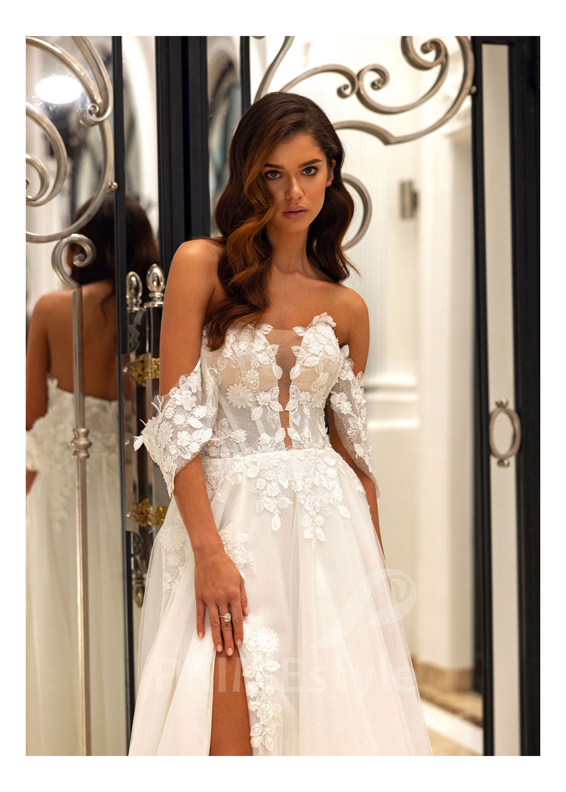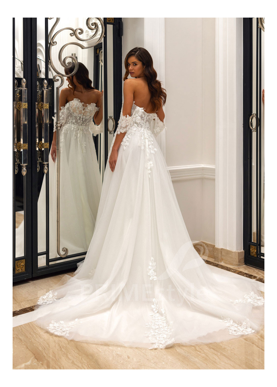Tento model si môžete objednať v rôznych konfekčných veľkostiach buď s vlečkou alebo bez. Ak máte atypickú postavu, pri výbere veľkosti odporúčame zvoliť opciu "Šitie na mieru" (za šitie svadobných šiat na mieru účtujeme príplatok 50 Eur).
