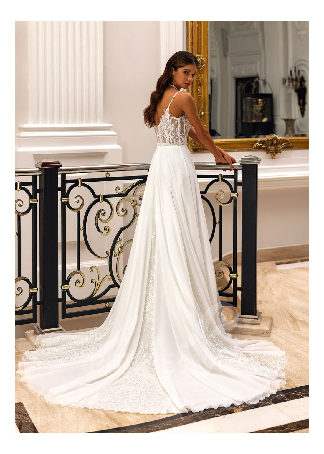 Tento model si môžete objednať v rôznych konfekčných veľkostiach buď s vlečkou alebo bez. Ak máte atypickú postavu, pri výbere veľkosti odporúčame zvoliť opciu "Šitie na mieru" (za šitie svadobných šiat na mieru účtujeme príplatok 50 Eur).