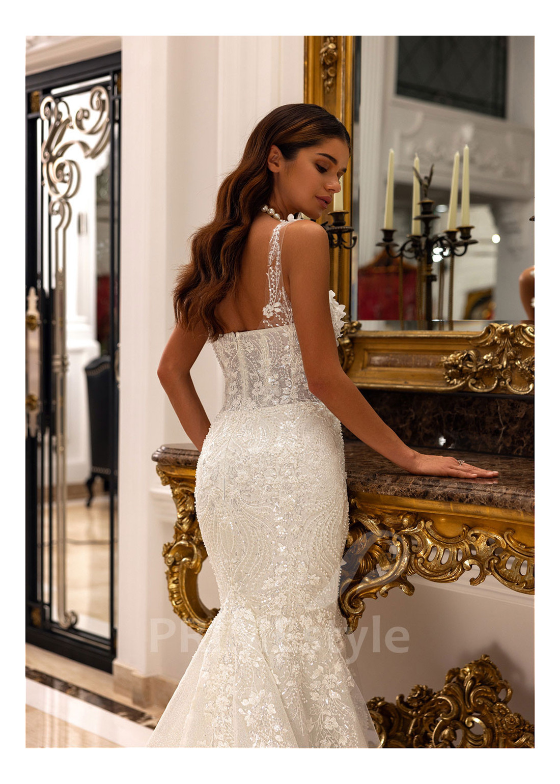 Tento model si môžete objednať v rôznych konfekčných veľkostiach buď s vlečkou alebo bez. Ak máte atypickú postavu, pri výbere veľkosti odporúčame zvoliť opciu "Šitie na mieru" (za šitie svadobných šiat na mieru účtujeme príplatok 50 Eur).