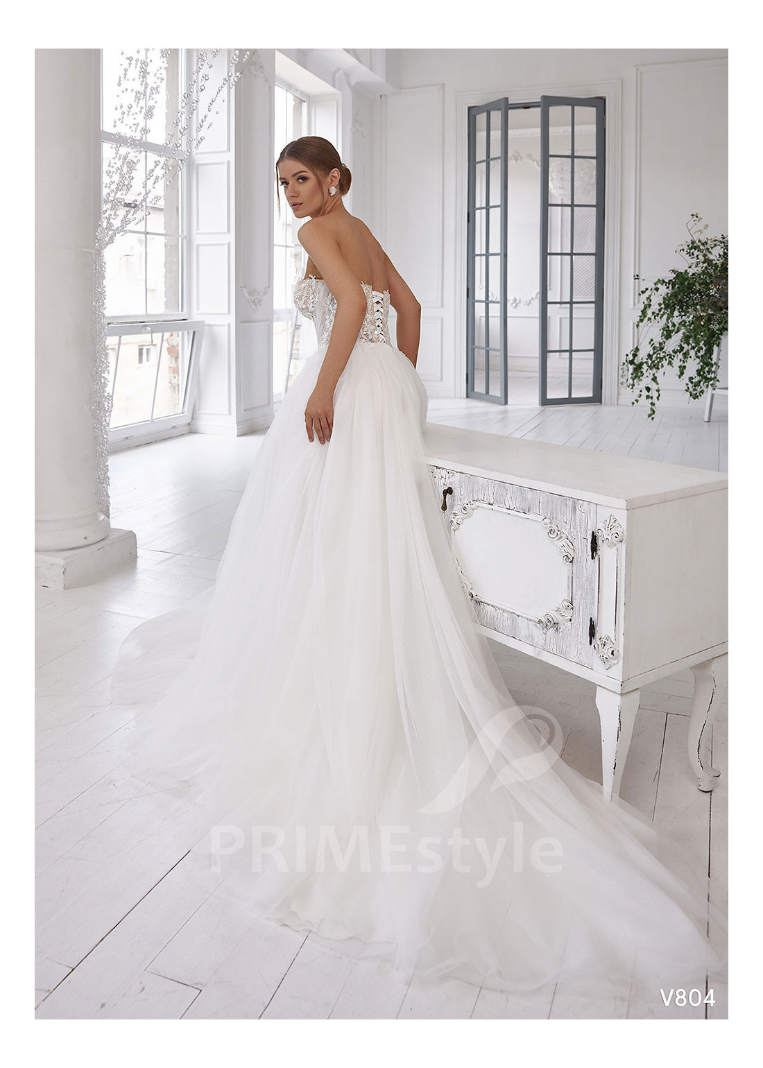 Tento model si môžete objednať v rôznych konfekčných veľkostiach buď s vlečkou alebo bez. Ak máte atypickú postavu, pri výbere veľkosti odporúčame zvoliť opciu "Šitie na mieru" (za šitie svadobných šiat na mieru účtujeme príplatok 50 Eur).