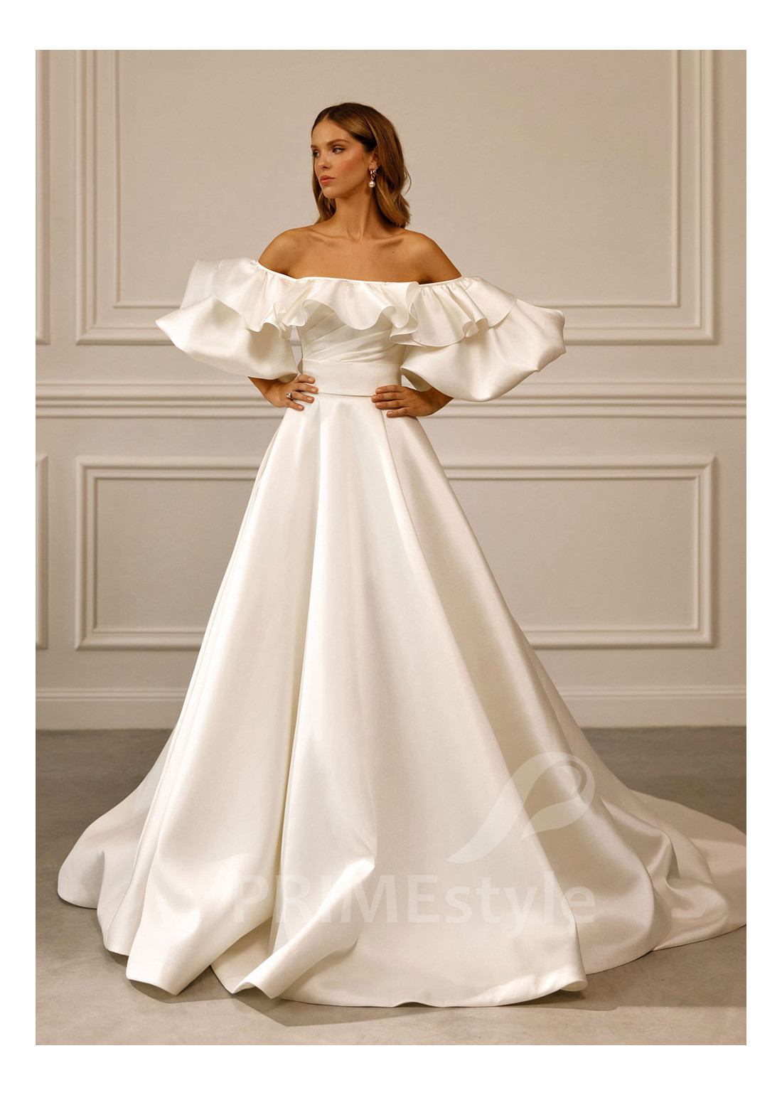 Tento model si môžete objednať v rôznych konfekčných veľkostiach buď s vlečkou alebo bez. Ak máte atypickú postavu, pri výbere veľkosti odporúčame zvoliť opciu "Šitie na mieru" (za šitie svadobných šiat na mieru účtujeme príplatok 50 Eur).