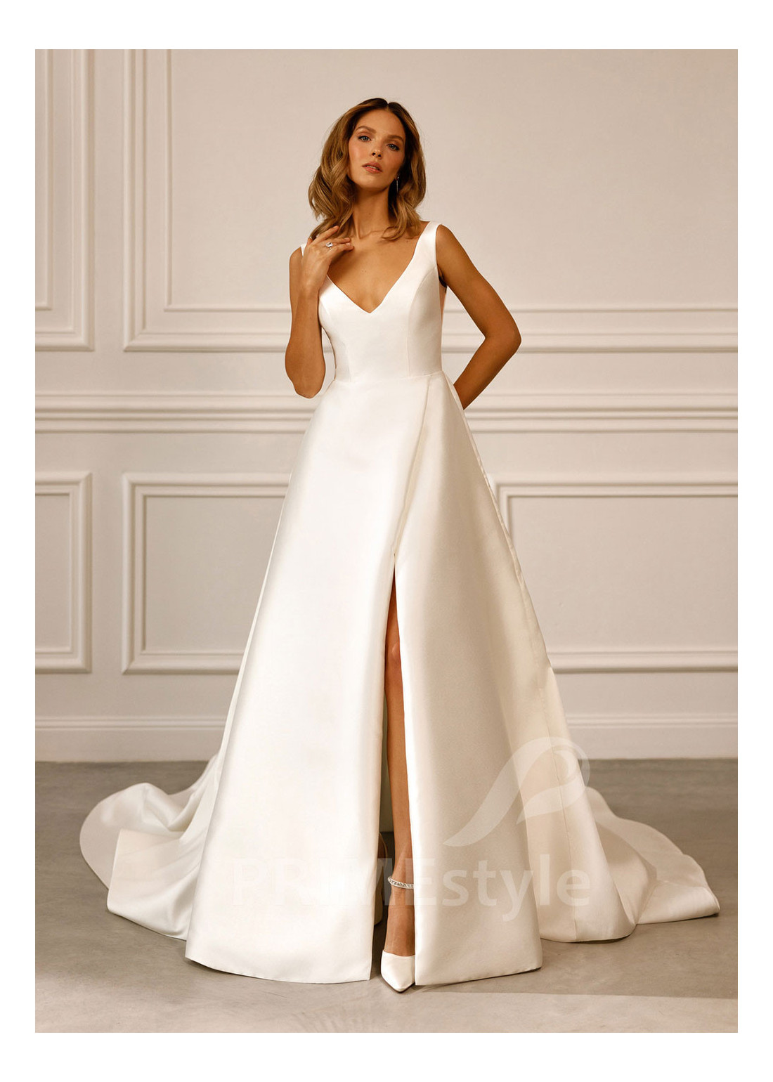 Tento model si môžete objednať v rôznych konfekčných veľkostiach buď s vlečkou alebo bez. Ak máte atypickú postavu, pri výbere veľkosti odporúčame zvoliť opciu "Šitie na mieru" (za šitie svadobných šiat na mieru účtujeme príplatok 50 Eur).