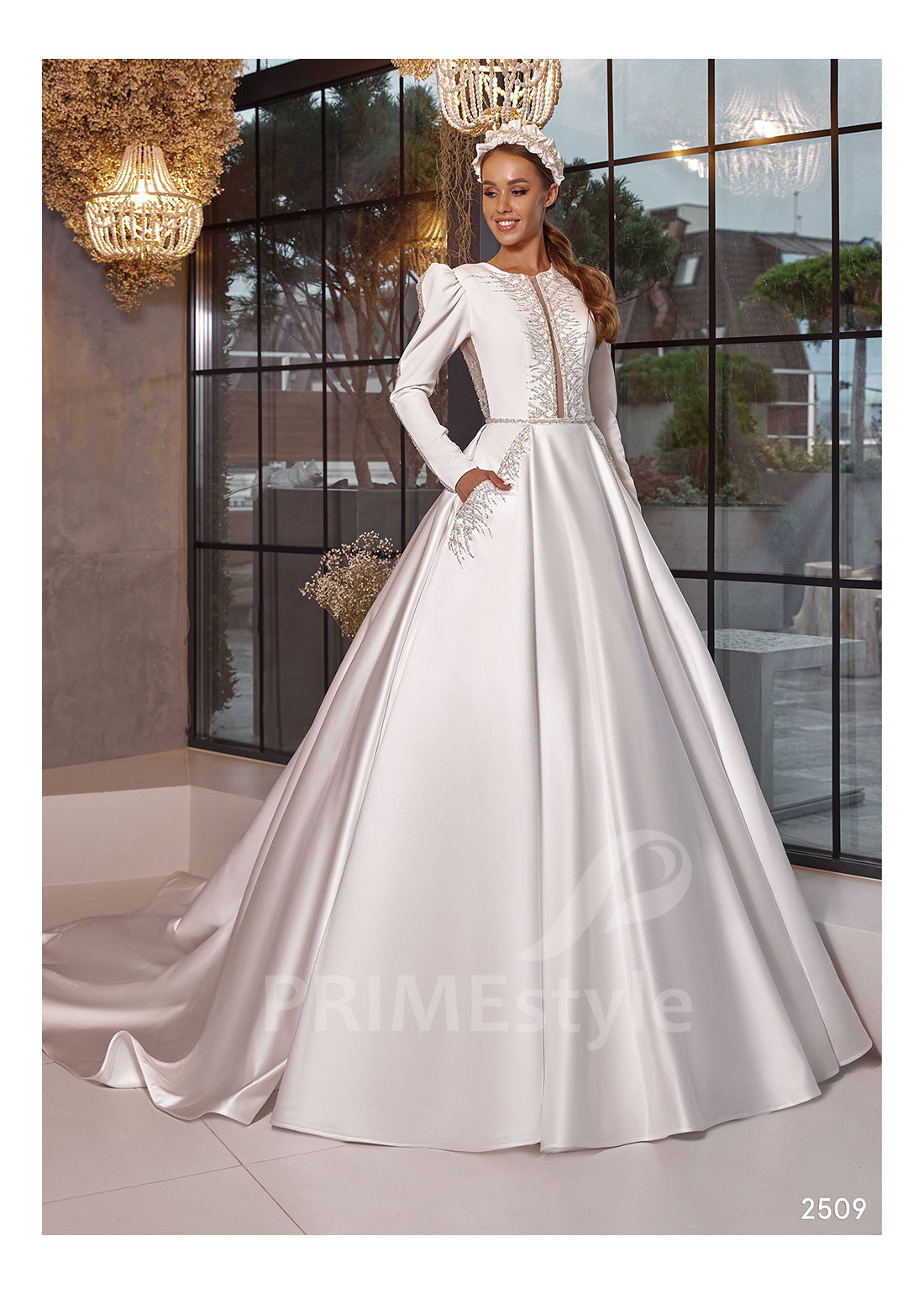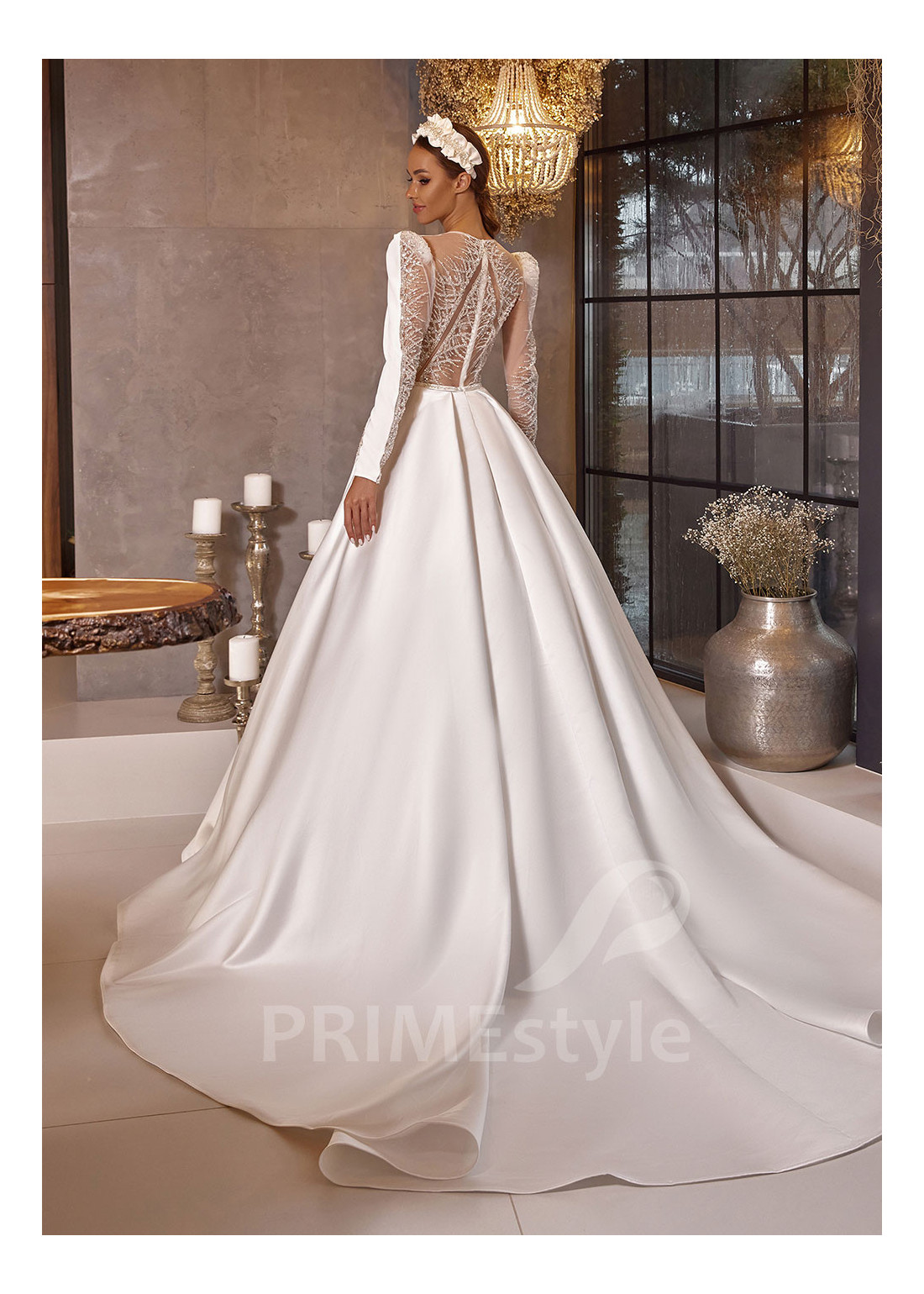 Tento model si môžete objednať v rôznych konfekčných veľkostiach buď s vlečkou alebo bez. Ak máte atypickú postavu, pri výbere veľkosti odporúčame zvoliť opciu "Šitie na mieru" (za šitie svadobných šiat na mieru účtujeme príplatok 50 Eur).