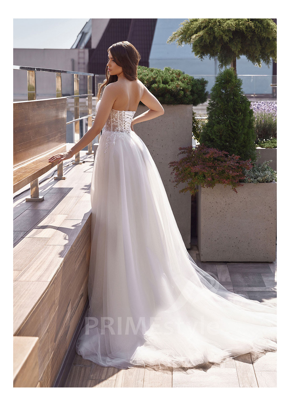 Tento model si môžete objednať v rôznych konfekčných veľkostiach buď s vlečkou alebo bez. Ak máte atypickú postavu, pri výbere veľkosti odporúčame zvoliť opciu "Šitie na mieru" (za šitie svadobných šiat na mieru účtujeme príplatok 50 Eur).