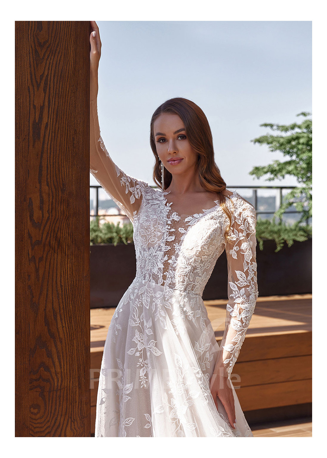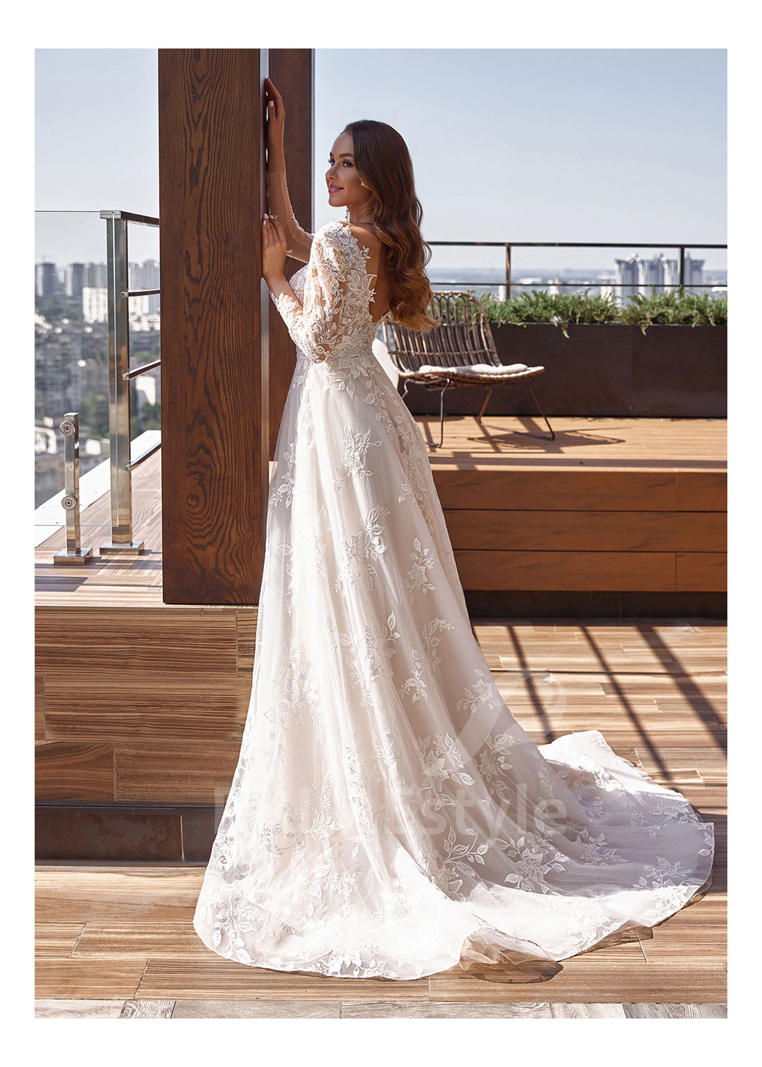 Tento model si môžete objednať v rôznych konfekčných veľkostiach buď s vlečkou alebo bez. Ak máte atypickú postavu, pri výbere veľkosti odporúčame zvoliť opciu "Šitie na mieru" (za šitie svadobných šiat na mieru účtujeme príplatok 50 Eur).