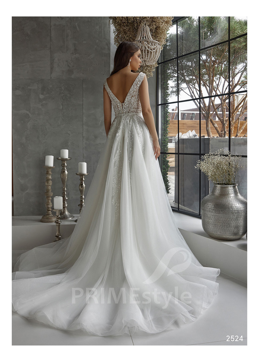 Tento model si môžete objednať v rôznych konfekčných veľkostiach buď s vlečkou alebo bez. Ak máte atypickú postavu, pri výbere veľkosti odporúčame zvoliť opciu "Šitie na mieru" (za šitie svadobných šiat na mieru účtujeme príplatok 50 Eur).
