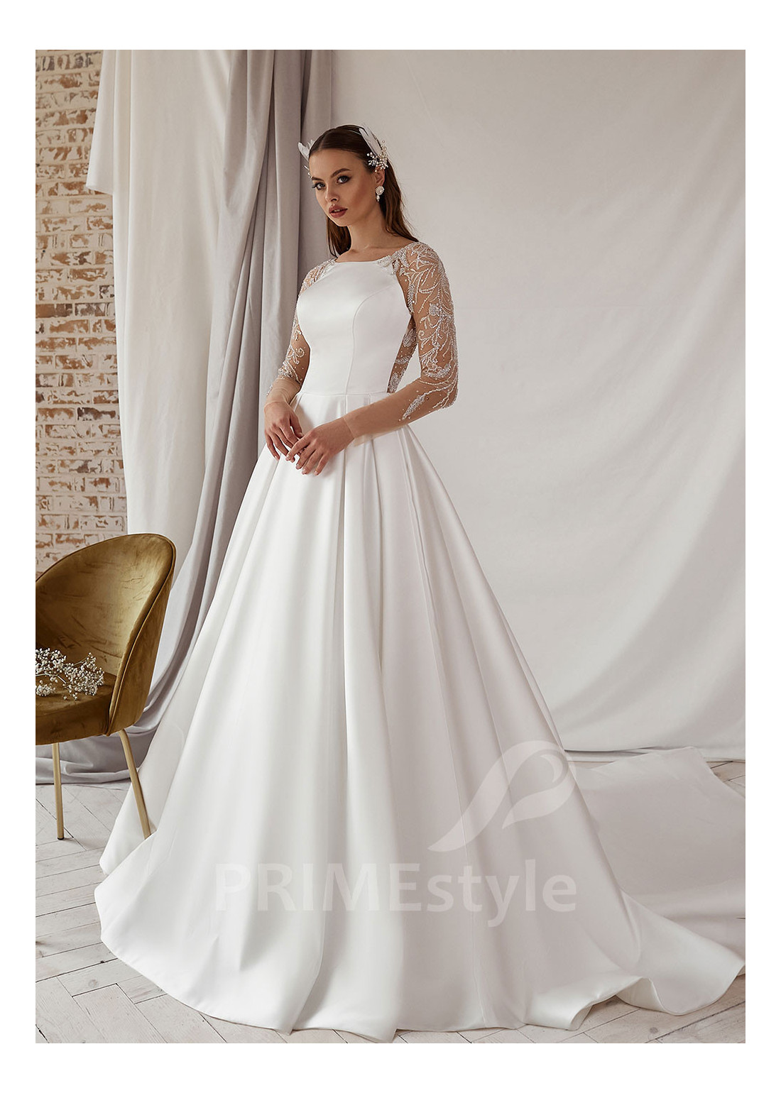 Elegantné saténove svadobné šaty LS706